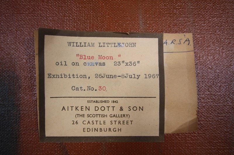 A superb original abstract oil painting on canvas by the highly distinguished Scottish artist William Hunter Littlejohn RSA, (1929-2006), titled Blue Moon and dated 1967, paper gallery label on the back shows all the information regarding this piece and the painting is mounted in the original frame. In excellent, clean condition and signed. Littlejohn was an interesting artist, a member of the Scottish Royal Academy, his art works are held in private and public collections, including the late HM The Queen.