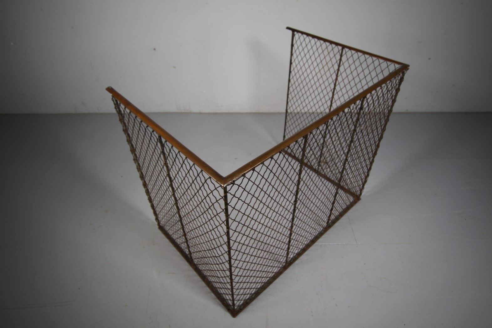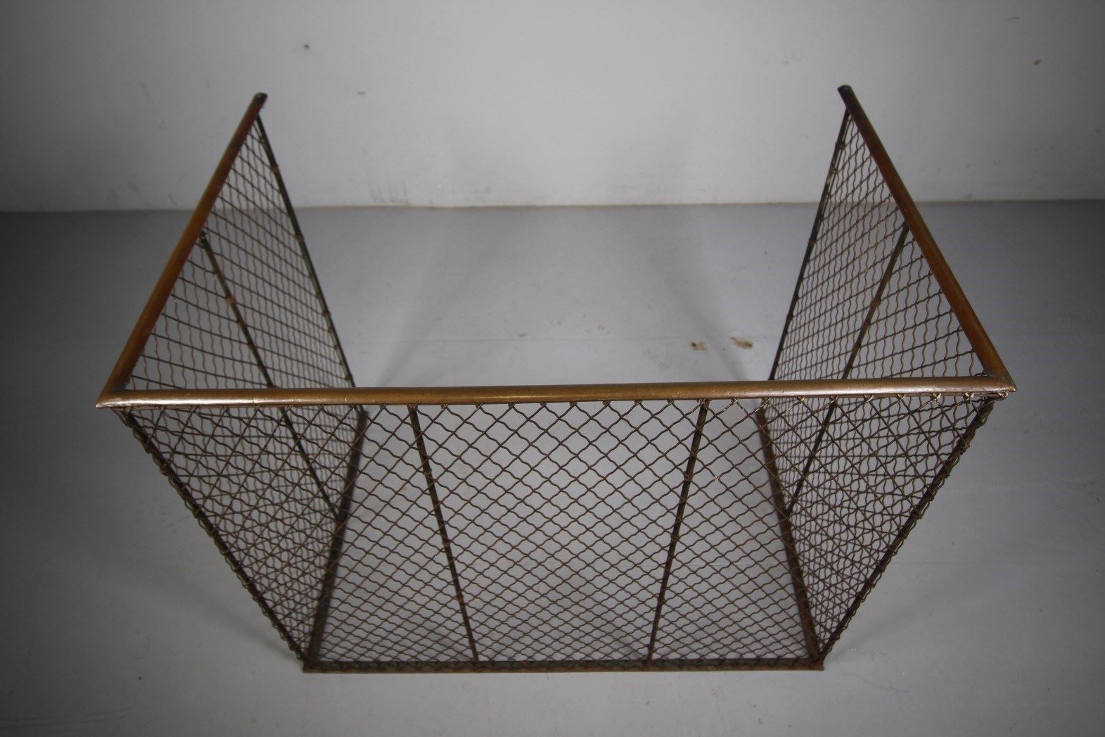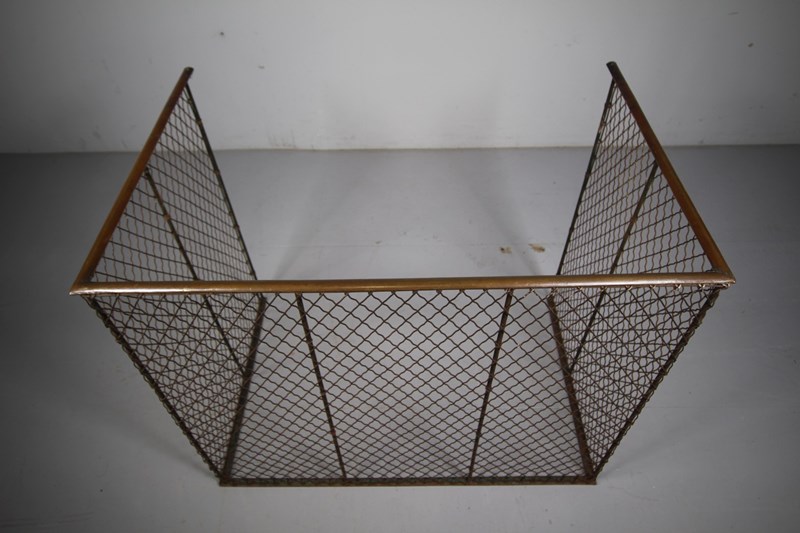 Perfect for a wood-burning or cooking stove that is out in the room, rather than in a fireplace, as this English antique fire guard is a lot deeper than usual. This is a very good example, all the wire work is complete to the front and sides and the guard has its original, un-polished brass top rail. English and dating to around 1870.