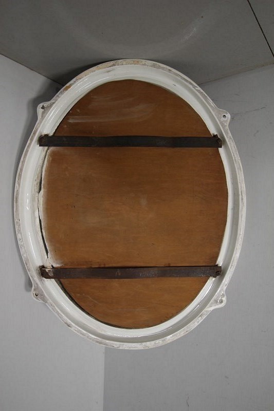 Large Edwardian Creamware Porcelain Antique Oval Mirror
