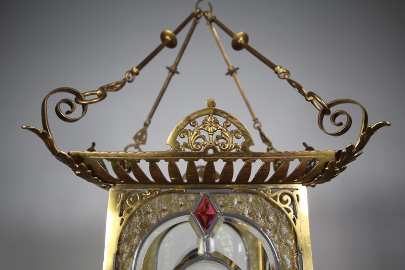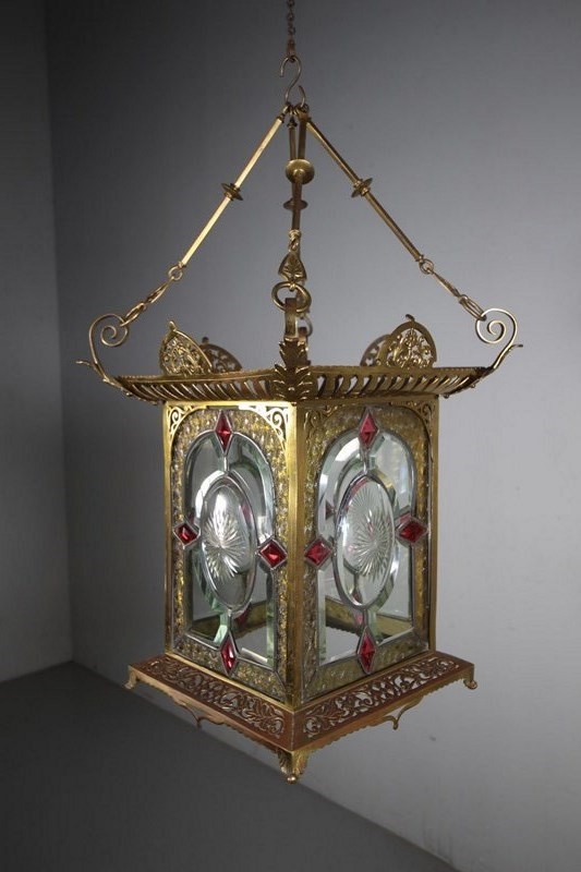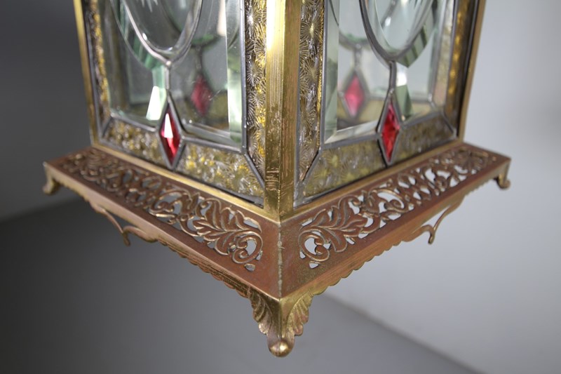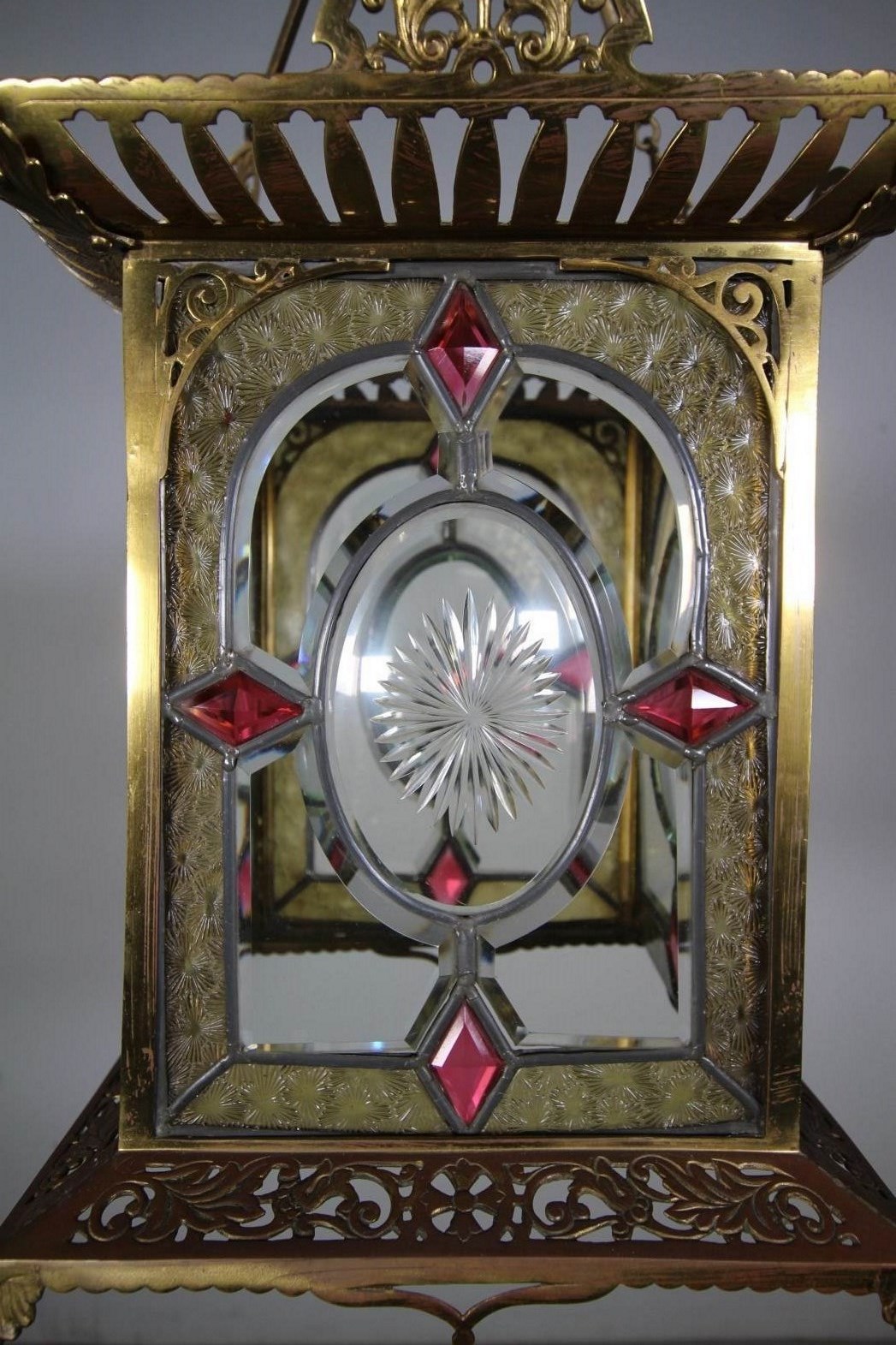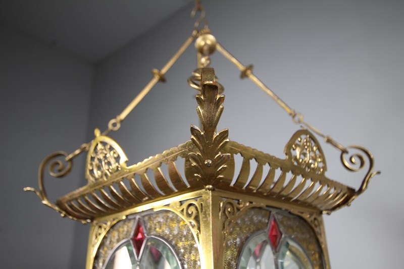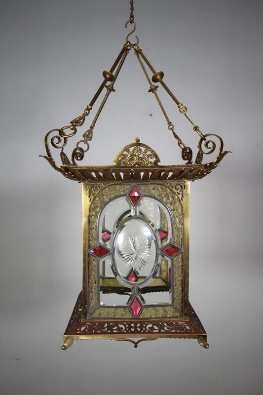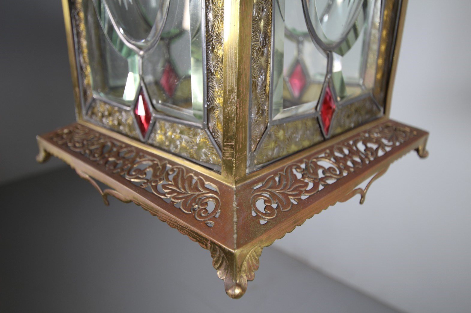 Large English 19th Century Antique Cast Brass & Glass Lantern