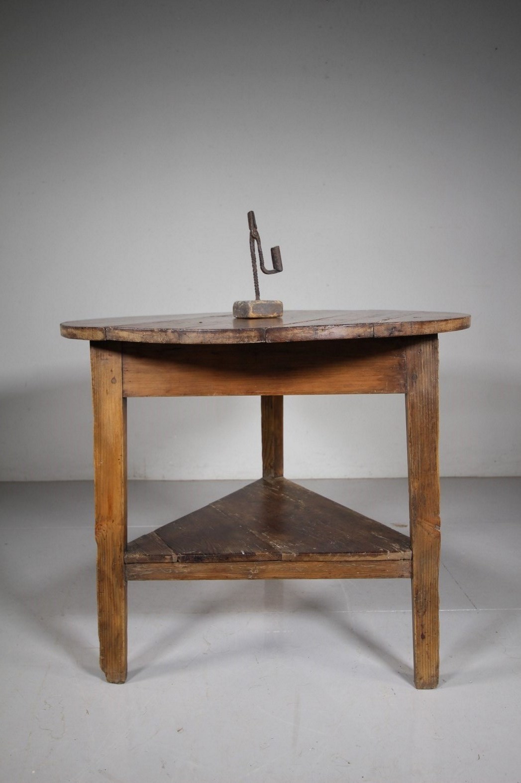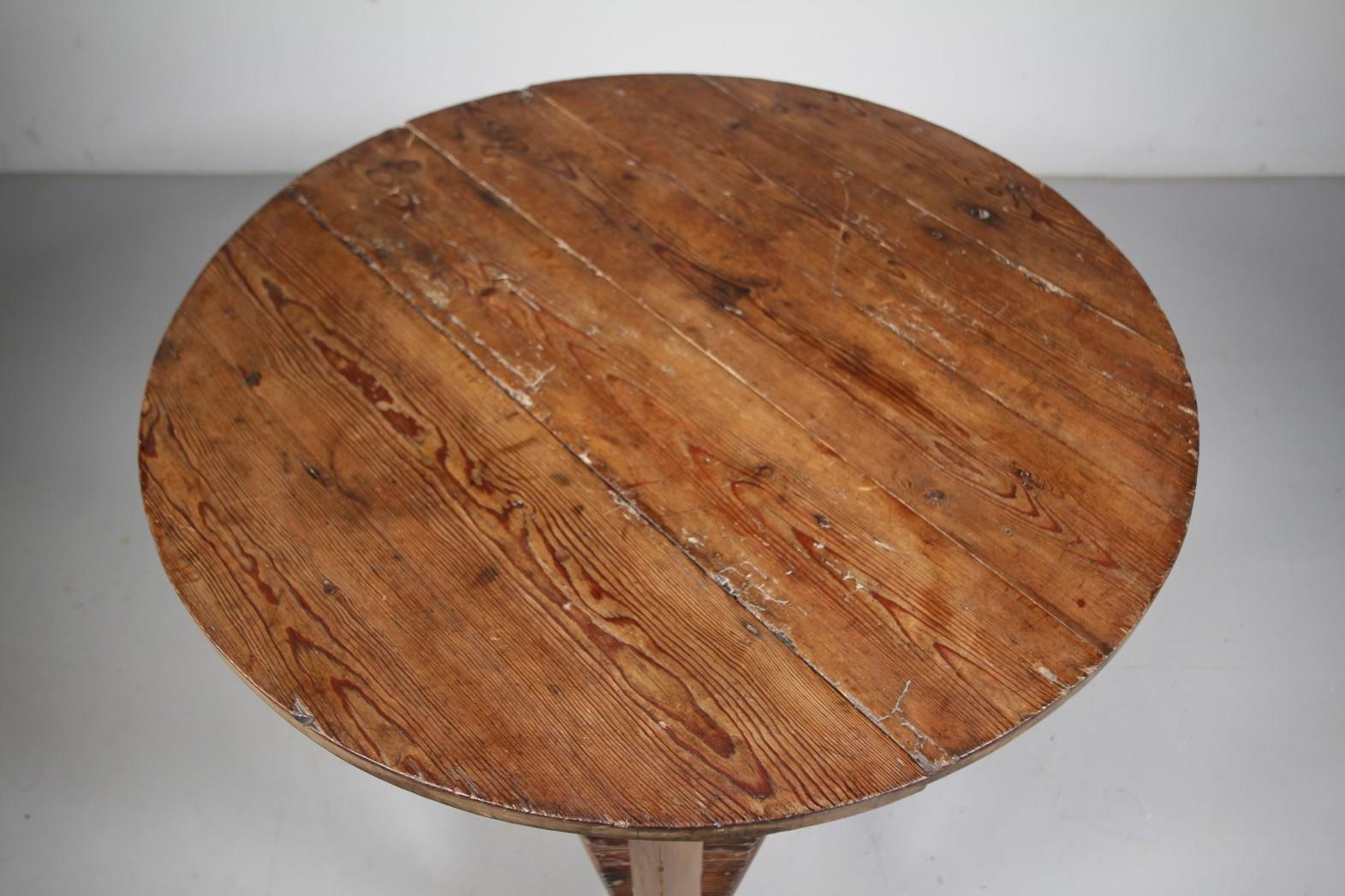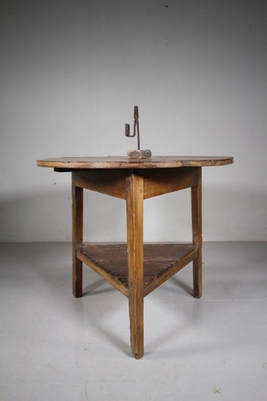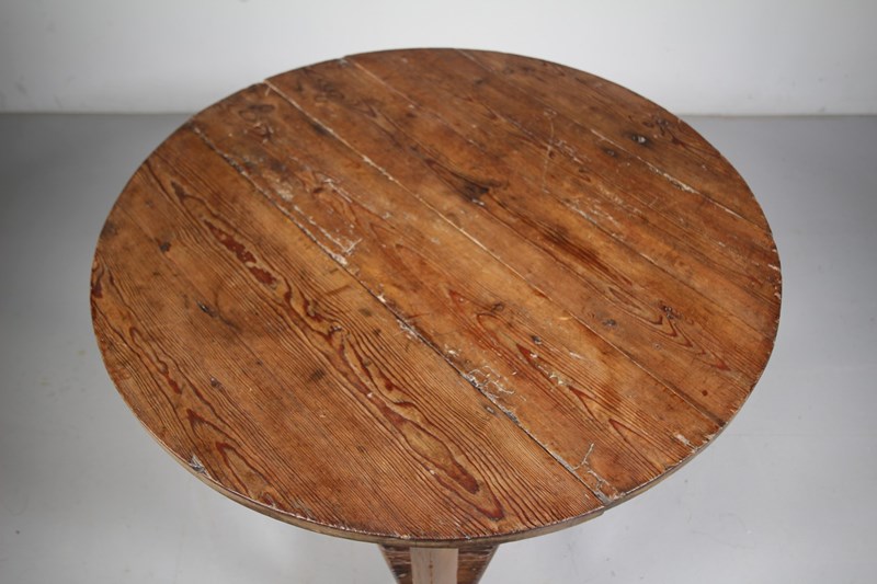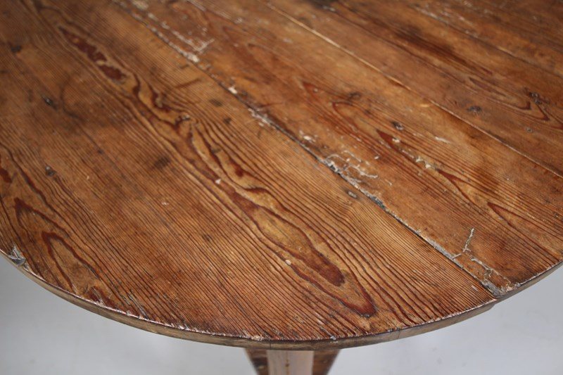 A very original early 19th century solid antique pine cricket table that has a large circular table top with an original pine under shelf. All pegged construction and in very good, solid condition. All a good even colour, dates top around 1830.