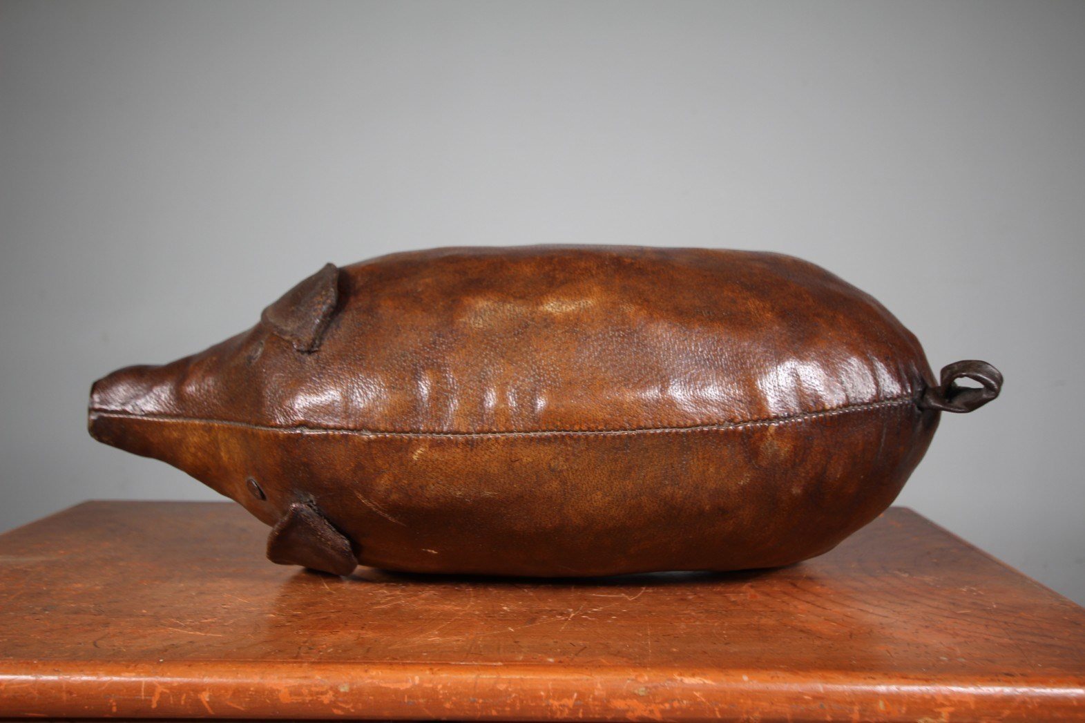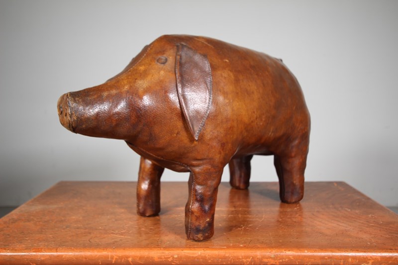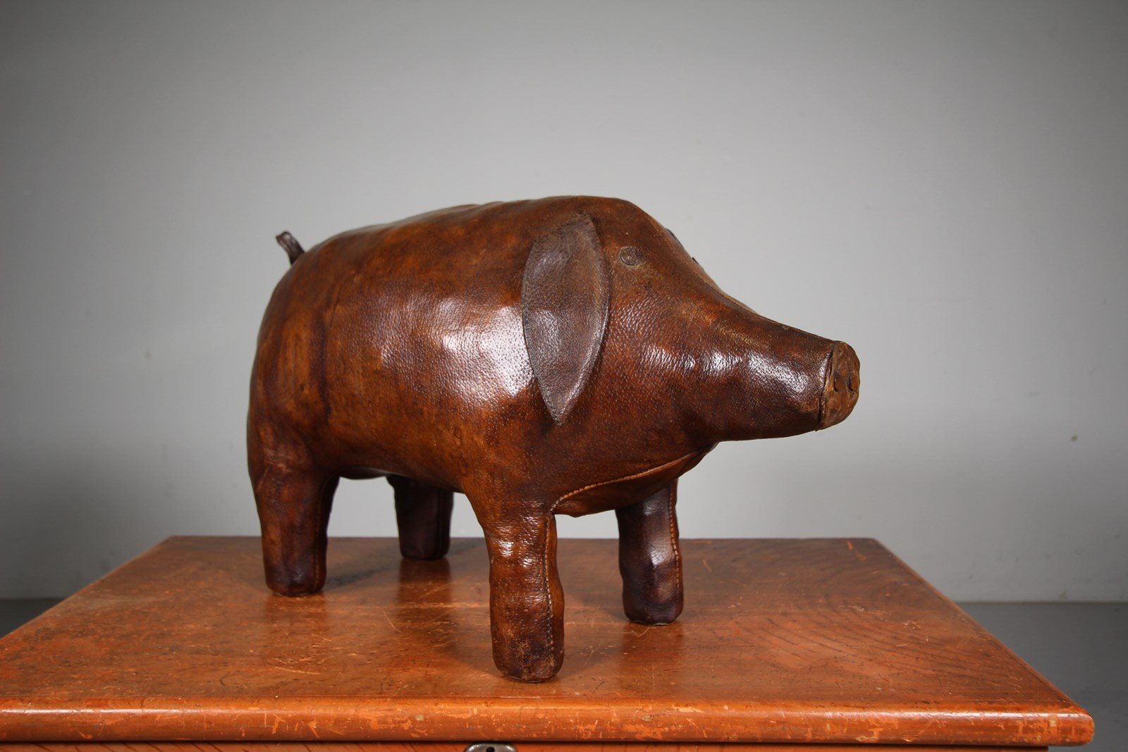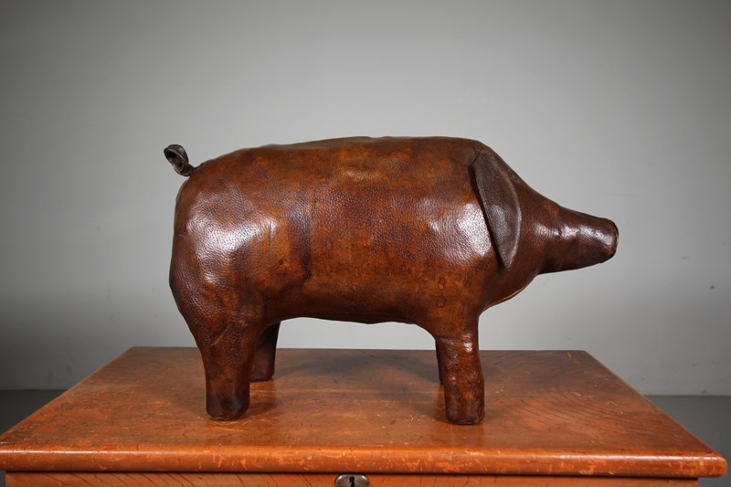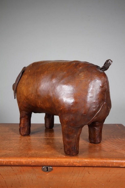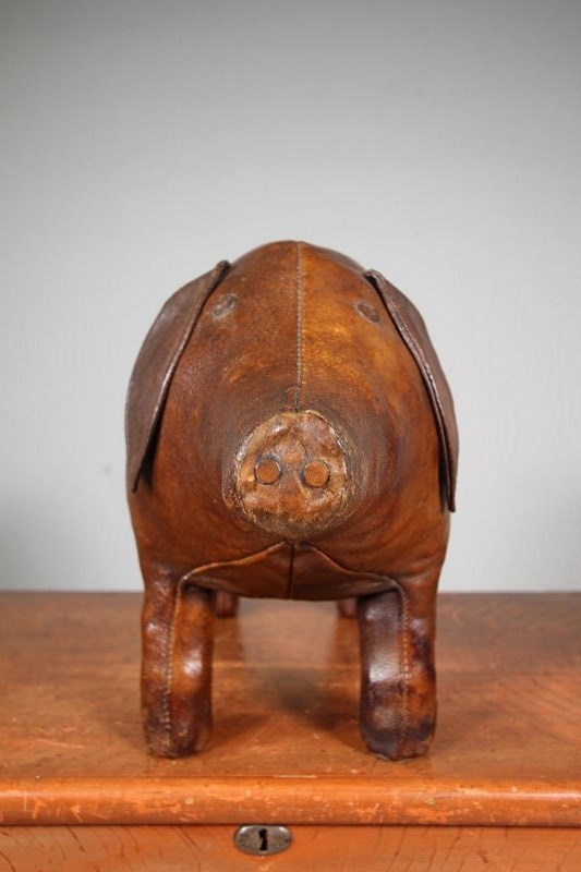 A very original fifties large scale brown leather pig by Omersa for Liberty London. Great plump shape, intact with it’s original ears and tail. A wonderful, rich original colour to the thick leather. Stands firmly, can be used as a footstool. Excellent condition with no tears.