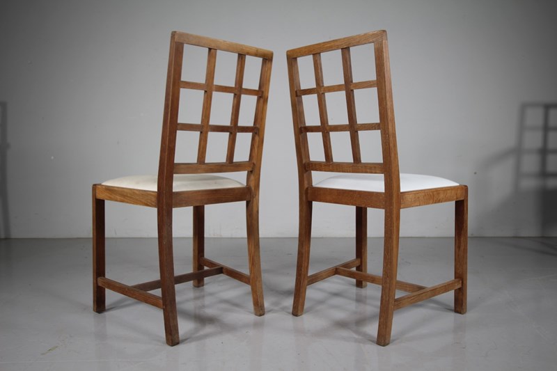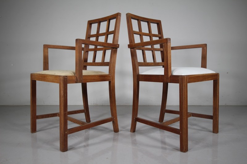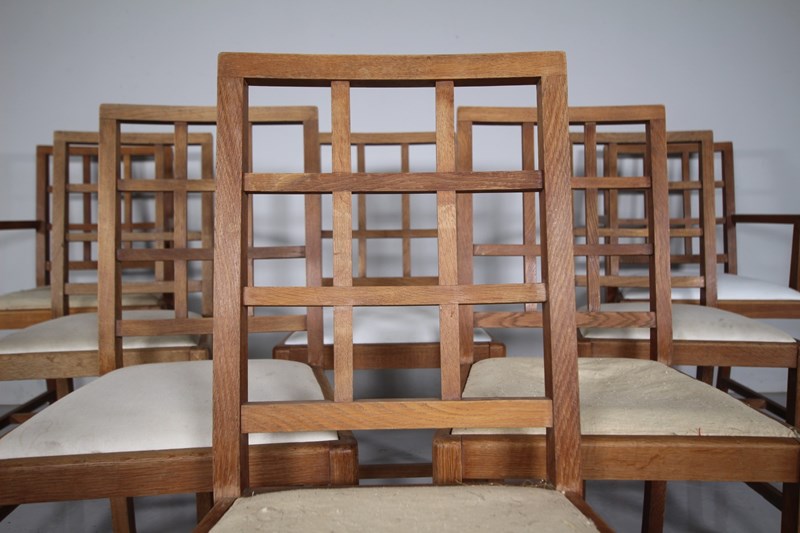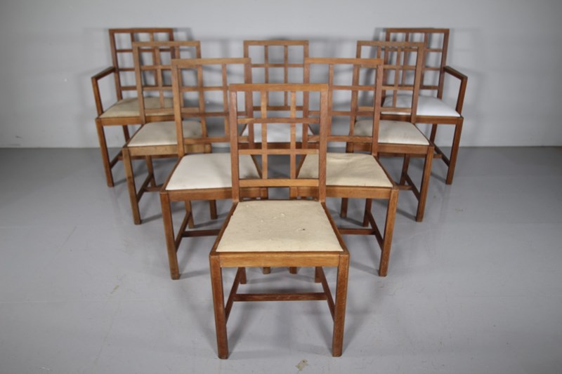 Long Set Of Eight Heals 1920’S Oak Dining Chairs – Lattice Back
