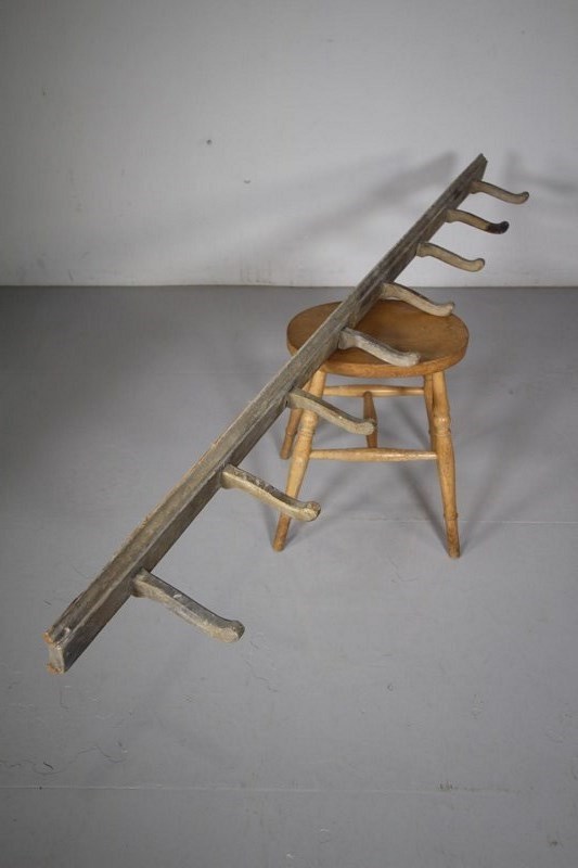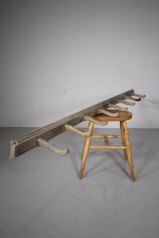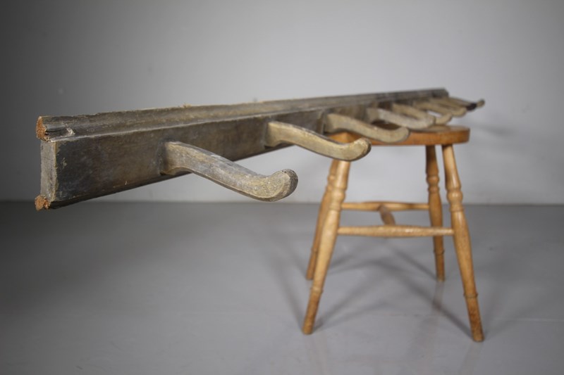 This is a lovely set of English 19th century finer antique hanging wall hooks that are mounted into the original moulded back board. In very good condition and still in the original paint finish. Perfect for using inside the home, as they are a more refined design, not like chunkier versions.
