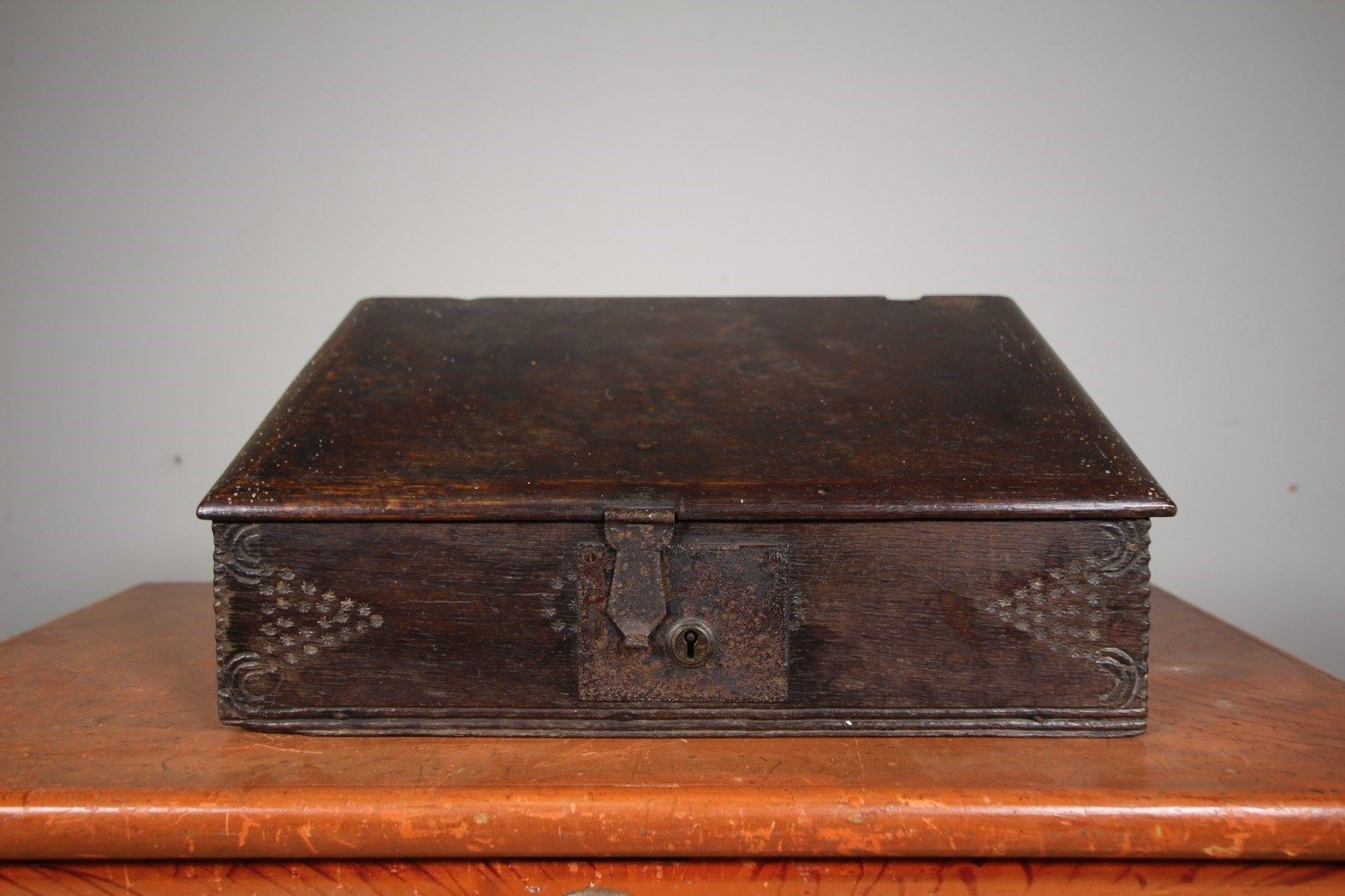 Lovely Smaller Size English 18Th Century Period Oak Antique Box