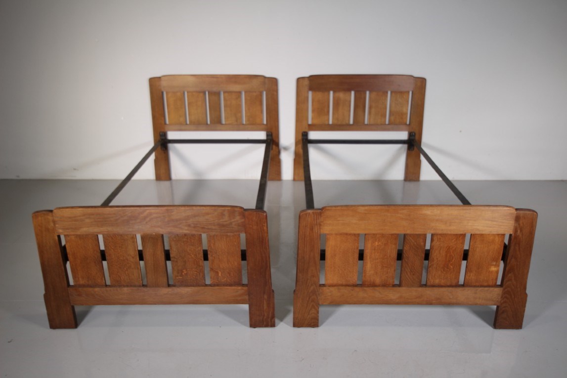 Pair Edward Barnsley High Quality 1930’s Oak Single Beds