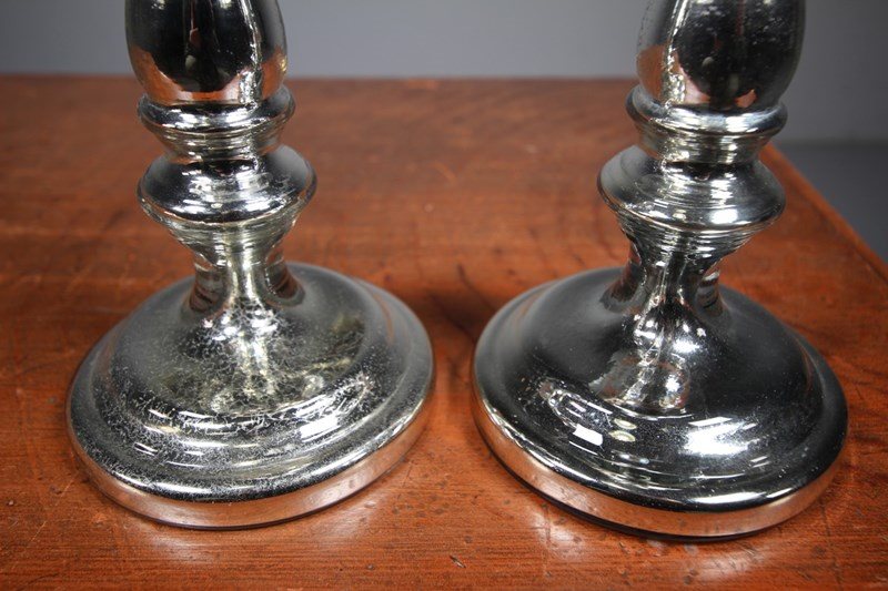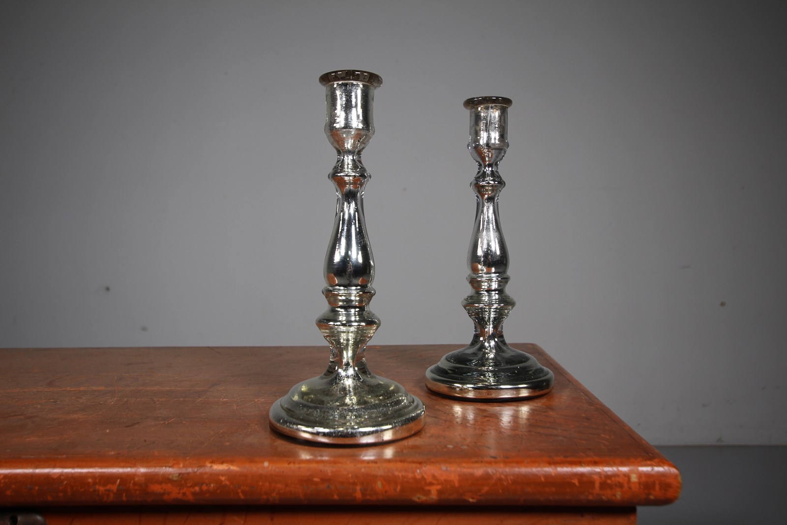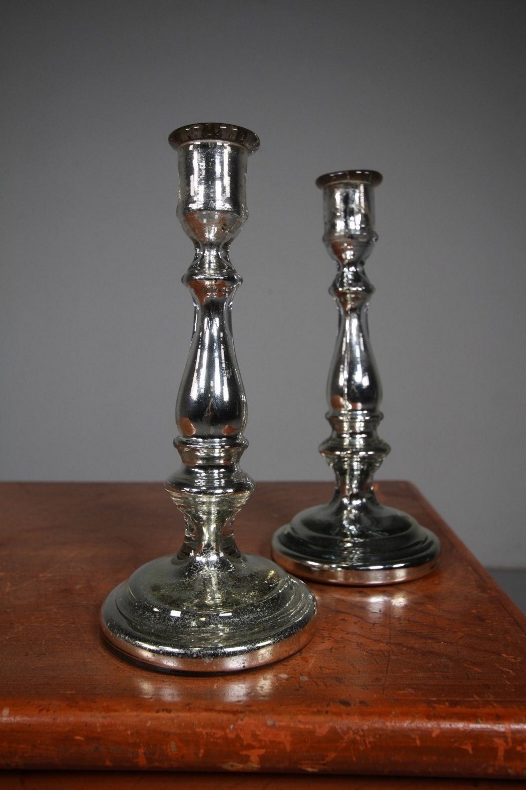 Pair of English 19th Century Antique Mercury Glass Candlesticks