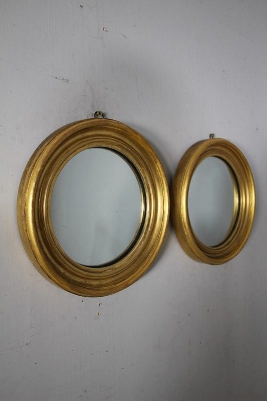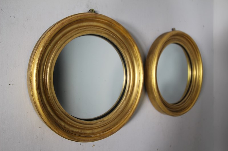 Pair Of English Antique Gilt Convex Wall Mirrors