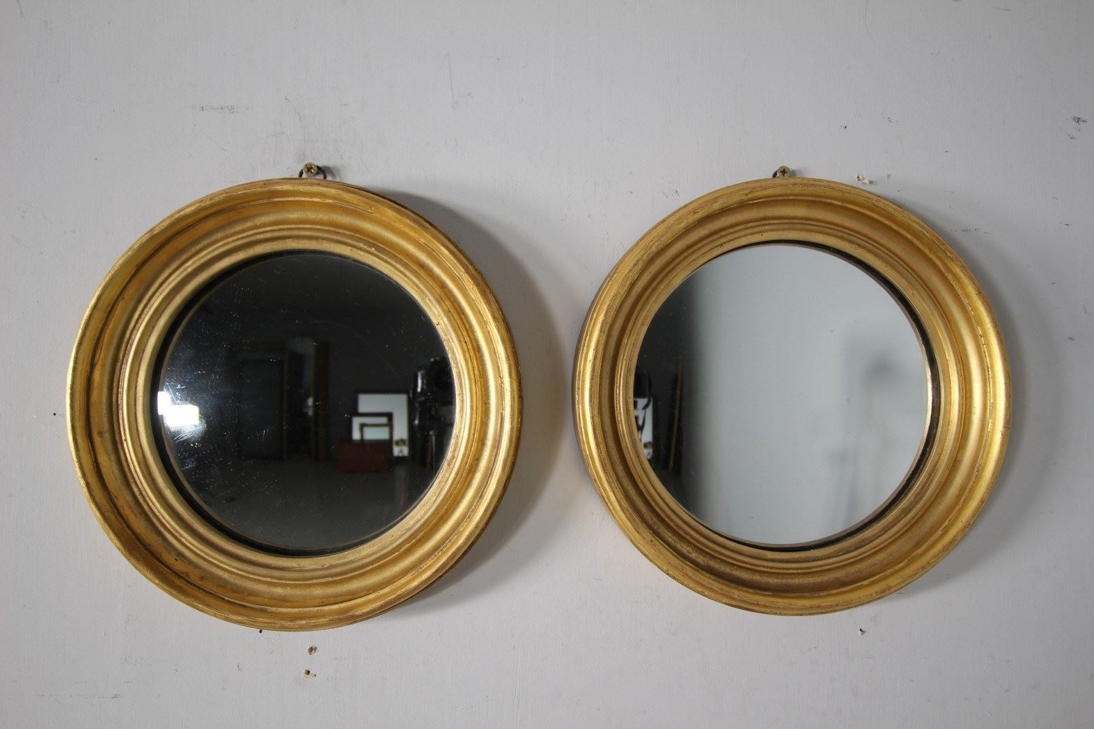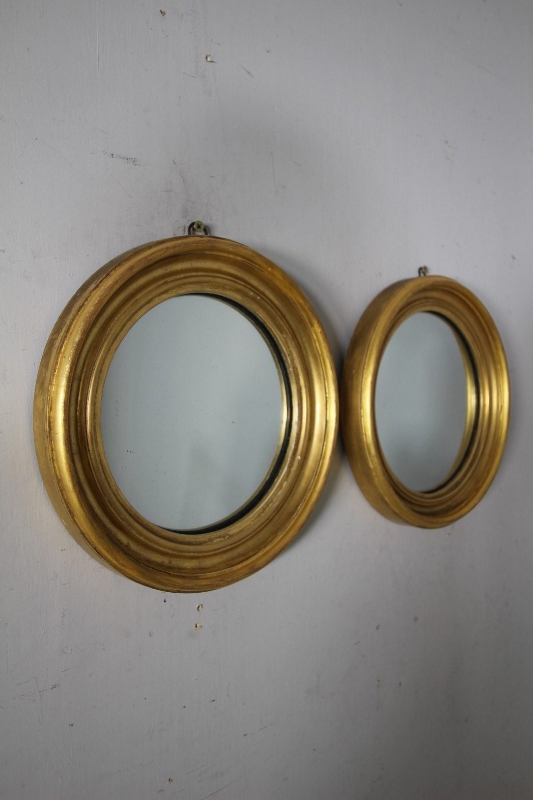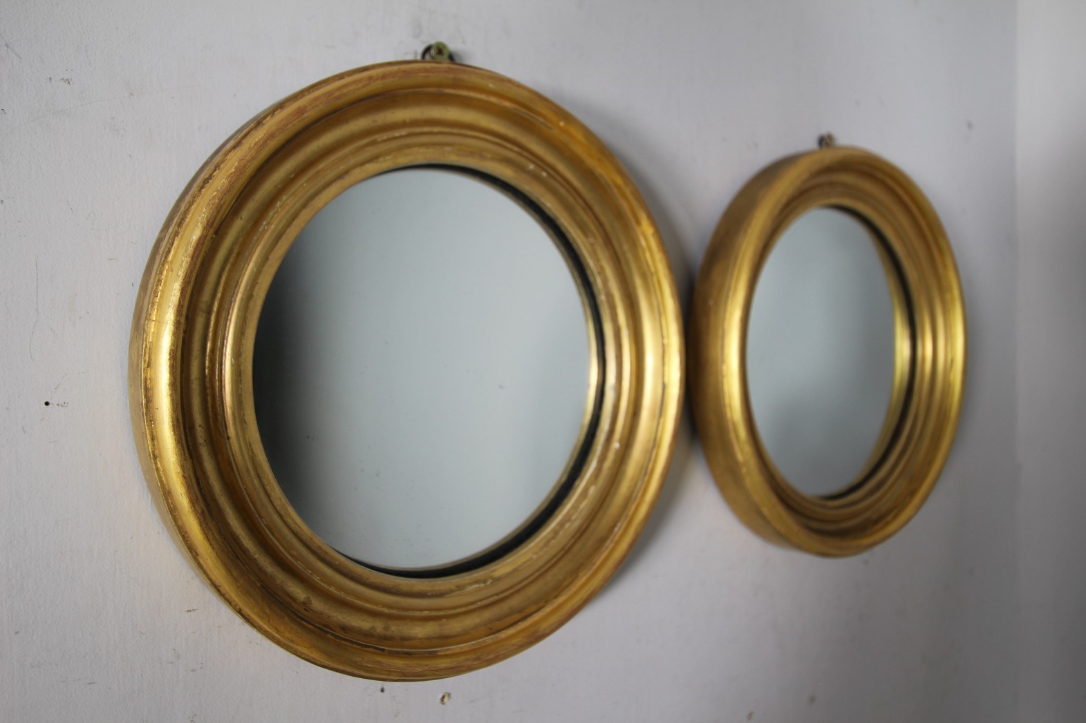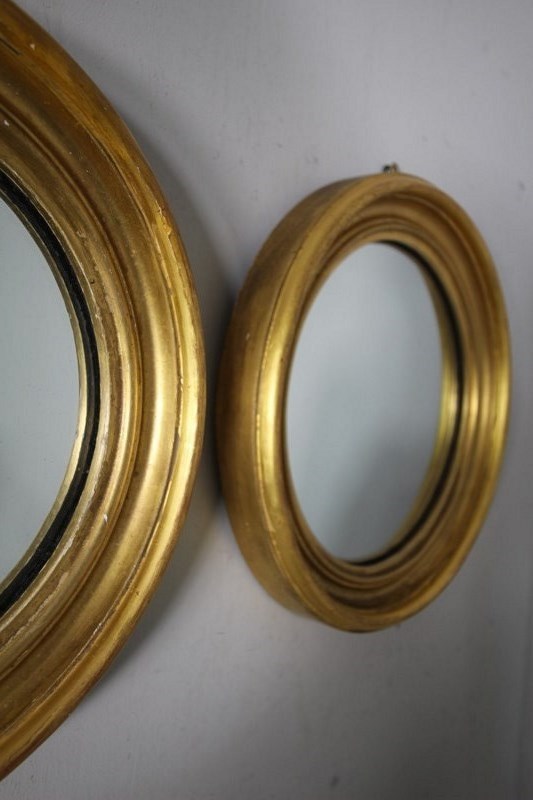 Pair of English Antique Gilt Convex Wall Mirrors