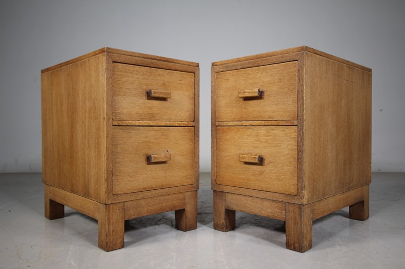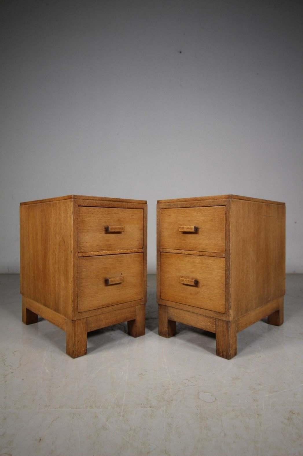 Pair of Heals 1920’s Oak Bedside Chests – Labelled