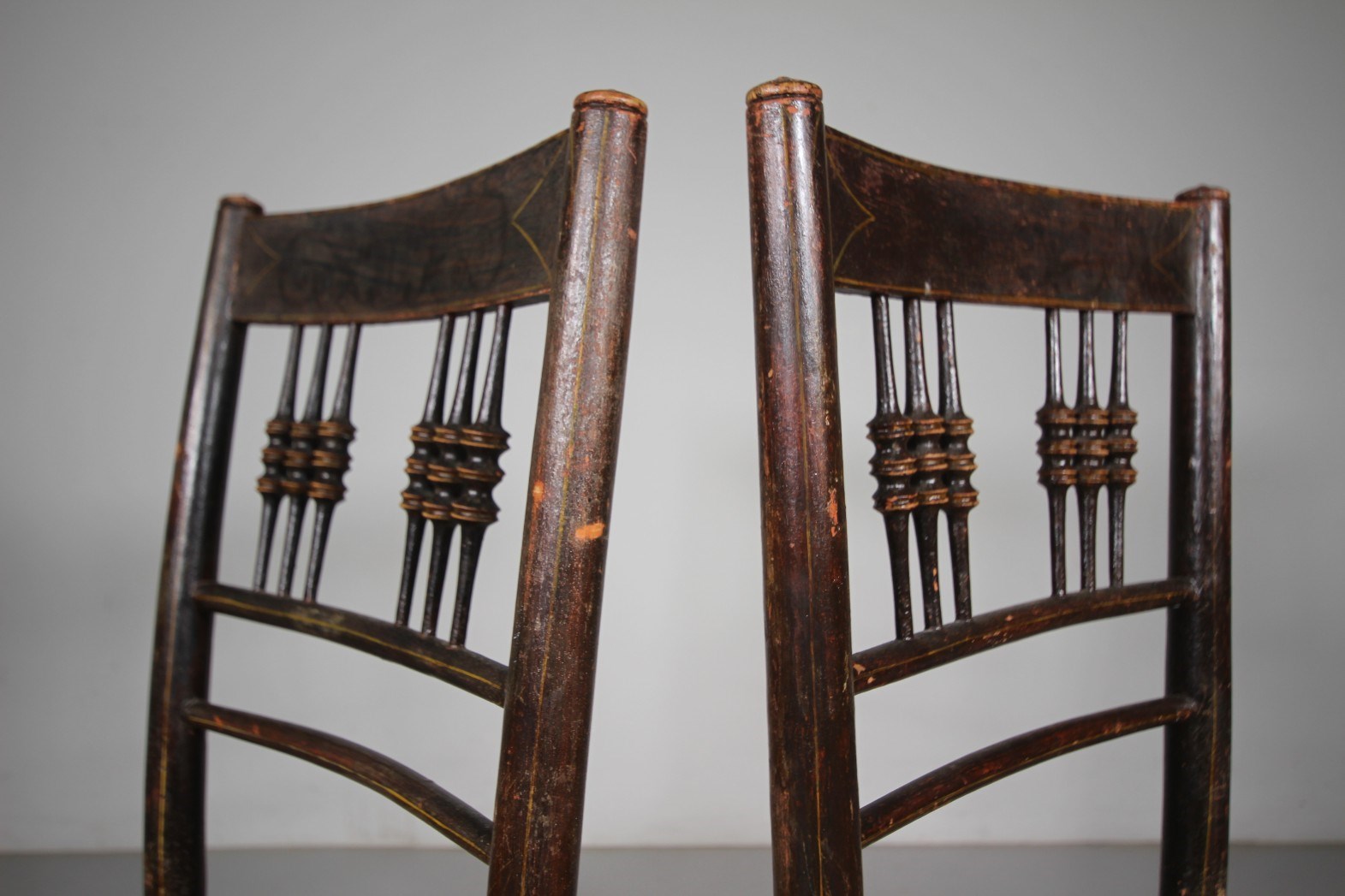 Pair of Regency Antique Faux Bamboo Chairs in Original Paint