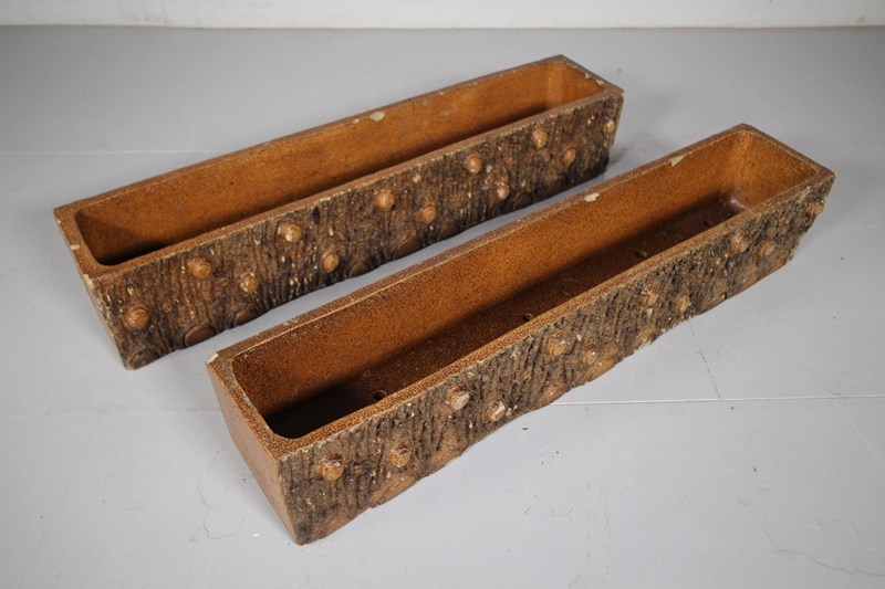 Pair Of Wonderful English Antique Faux Bois Terracotta Window Troughs