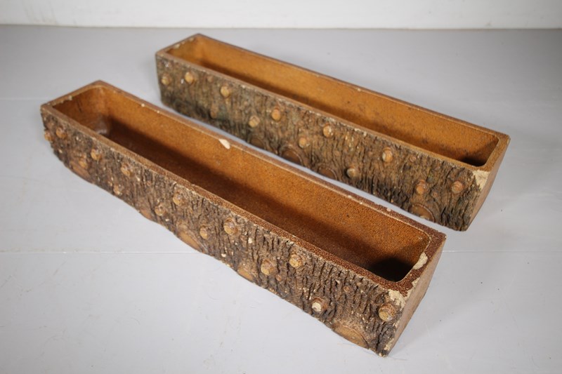 Pair Of Wonderful English Antique Faux Wood Terracotta Window Troughs