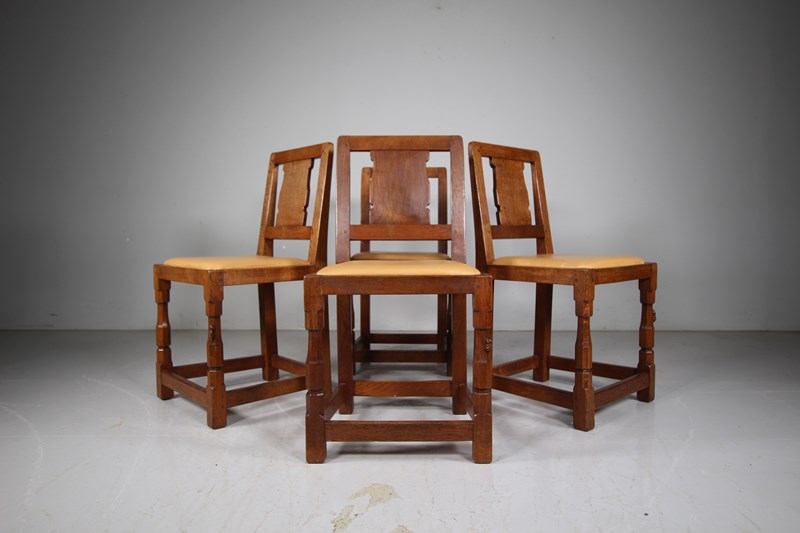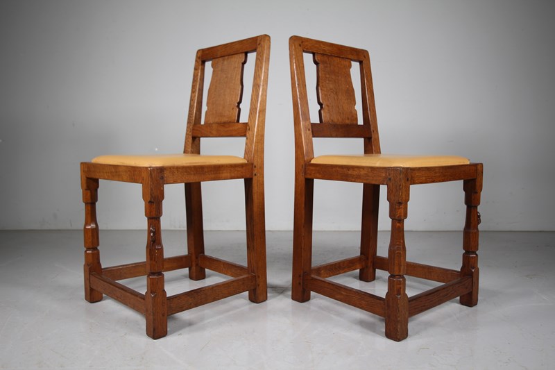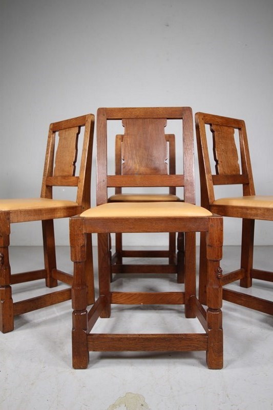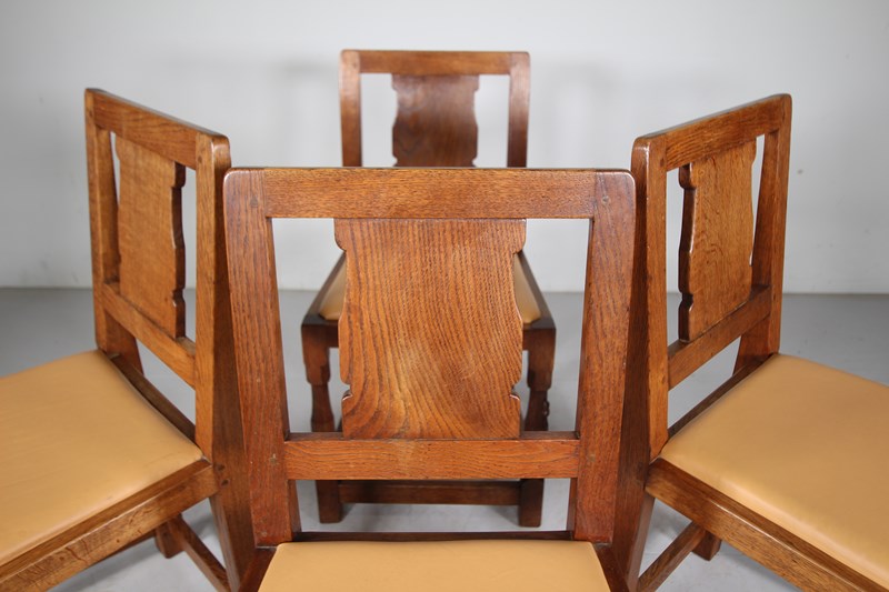Rare Design 1930'S Mouseman Set Of Four Dining Chairs