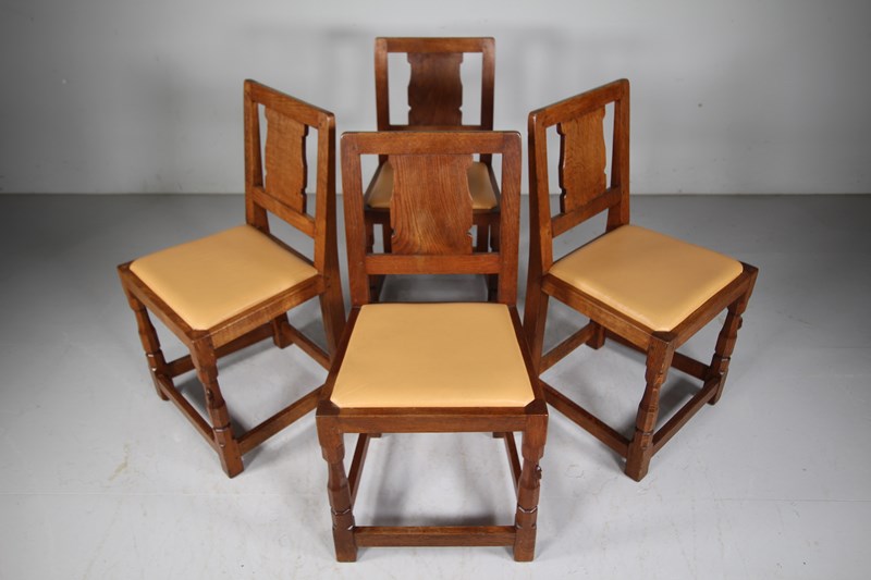 Rare Design 1930’s Mouseman Set of Four Dining Chairs