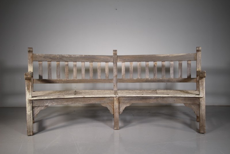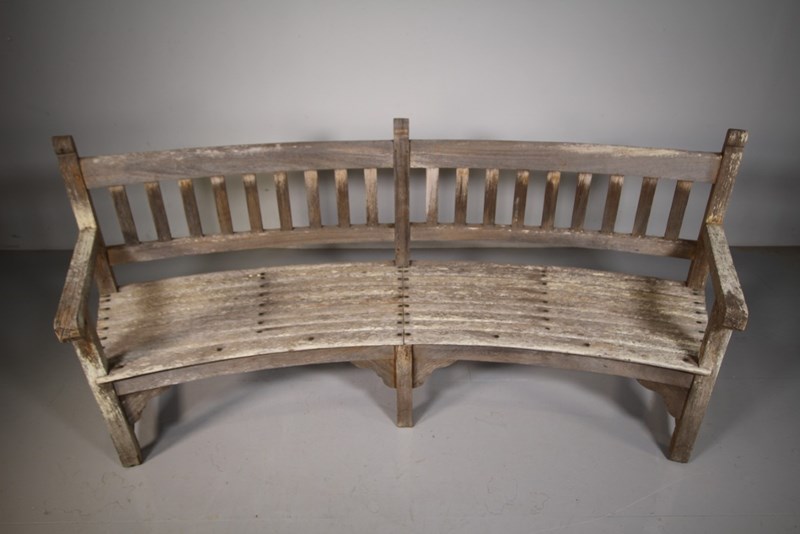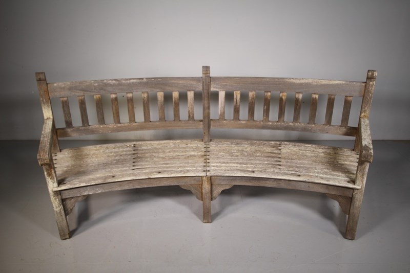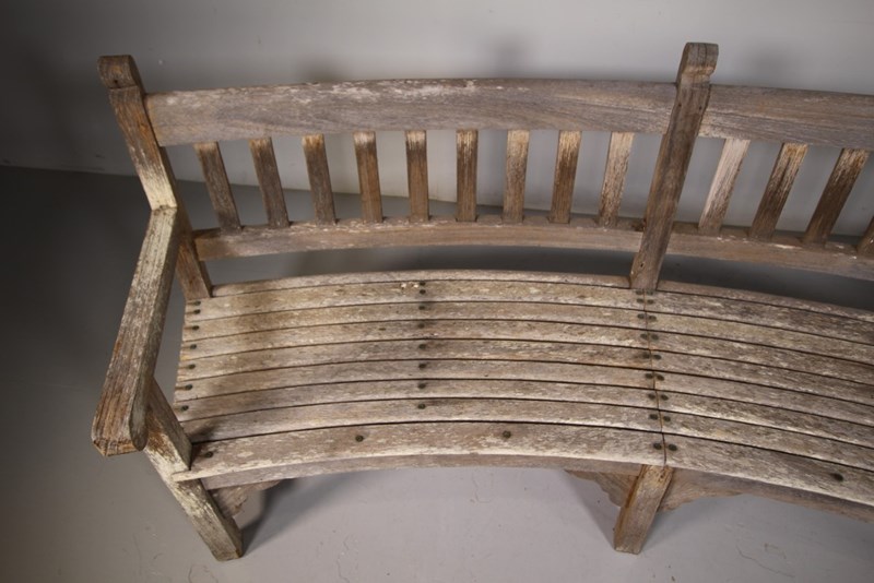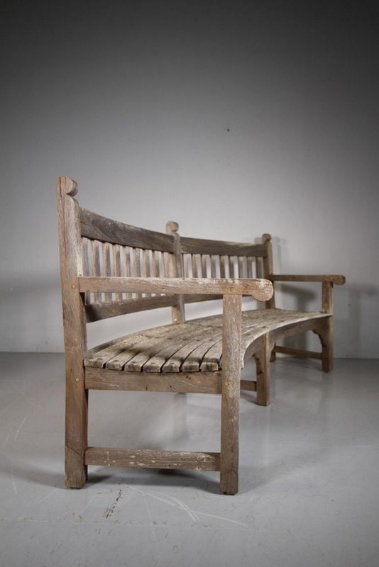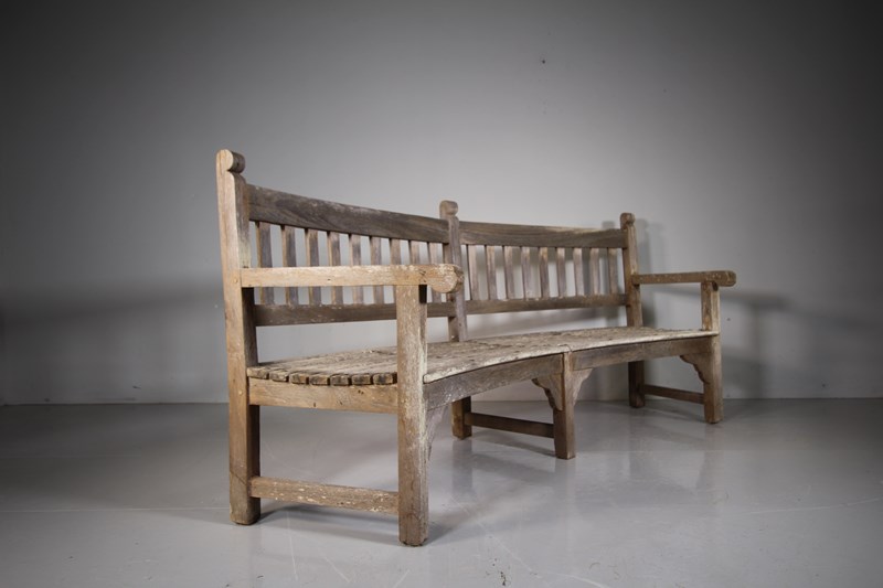 Rare Heals of London Antique Curved Teak Garden Bench Seat