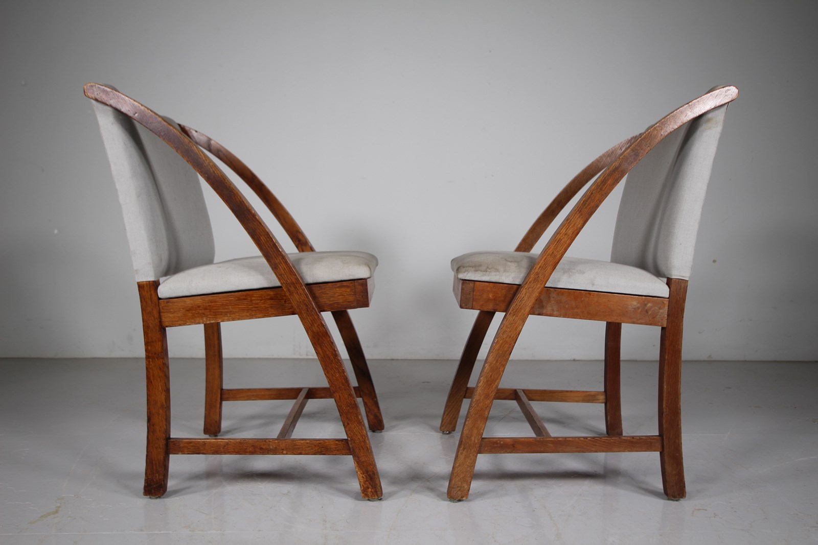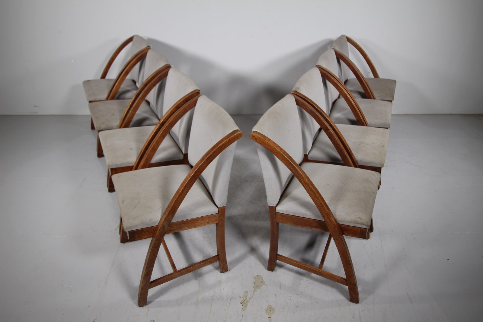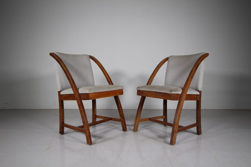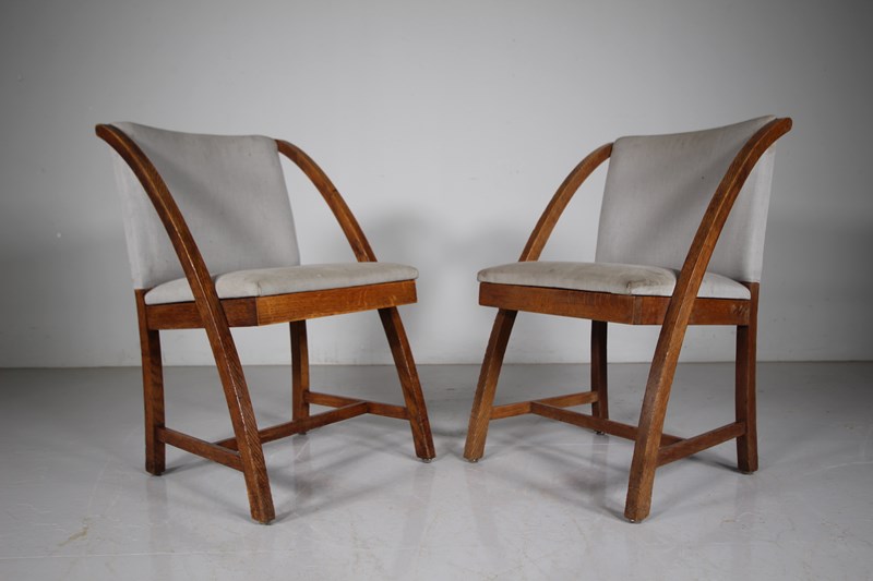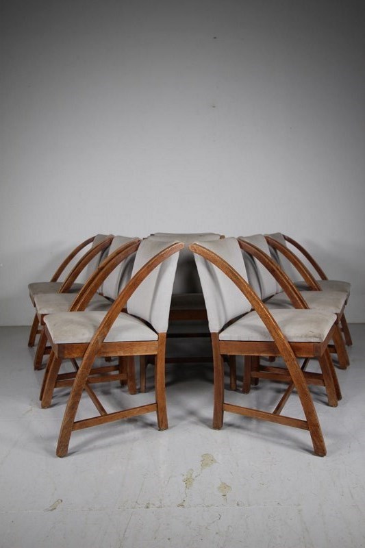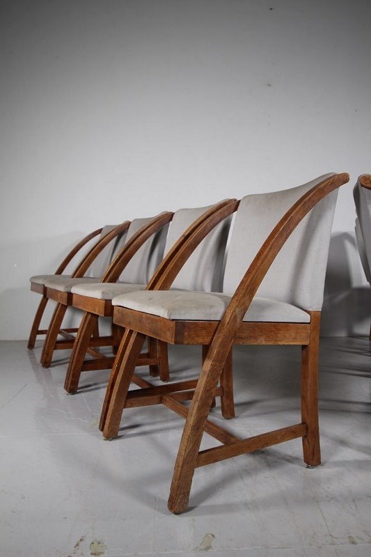 Rare Set of Eight Heals 1930’s Oak Dining Chairs – Labelled