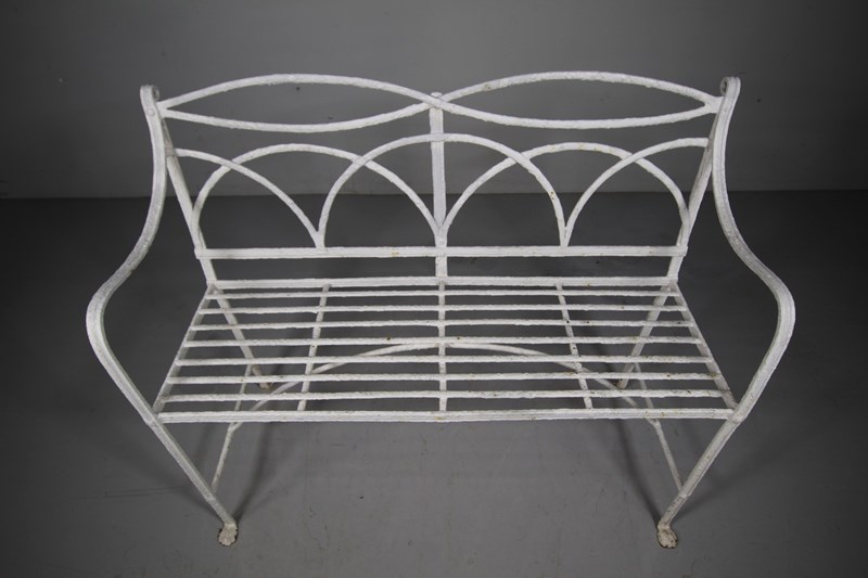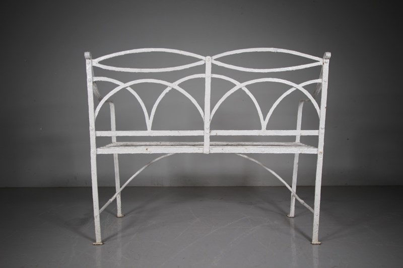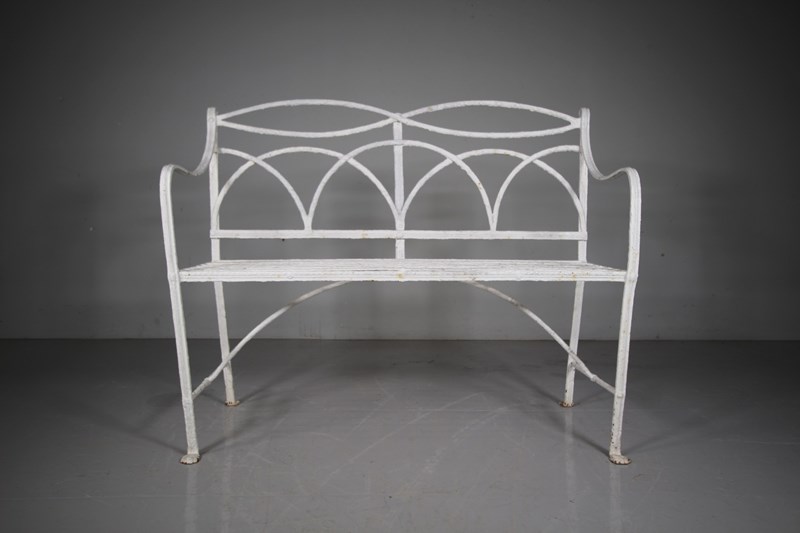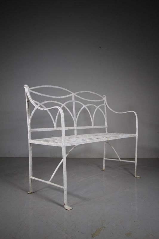 Regency English Antique Garden Bench In Wrought Iron