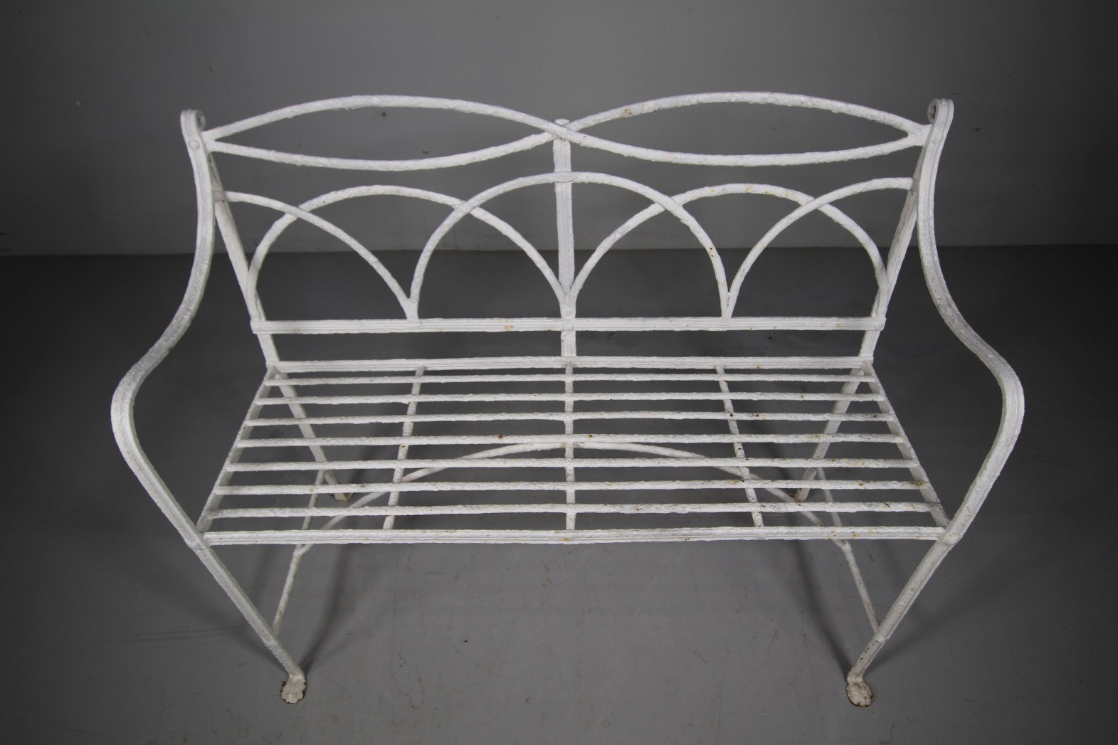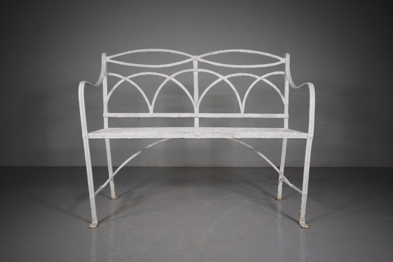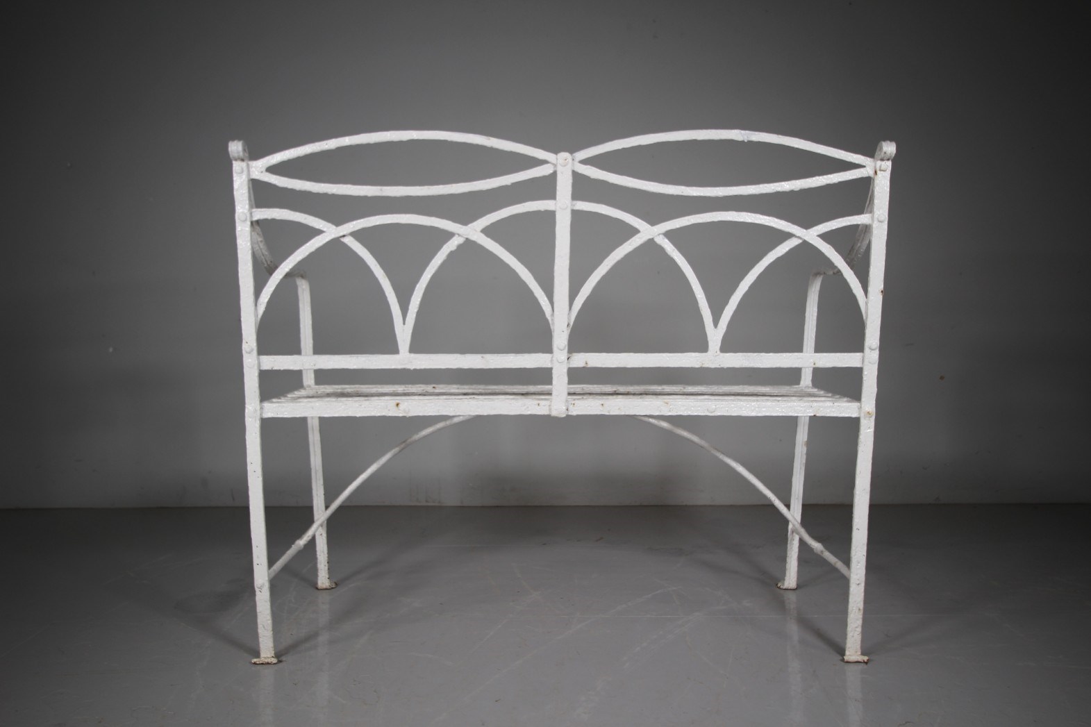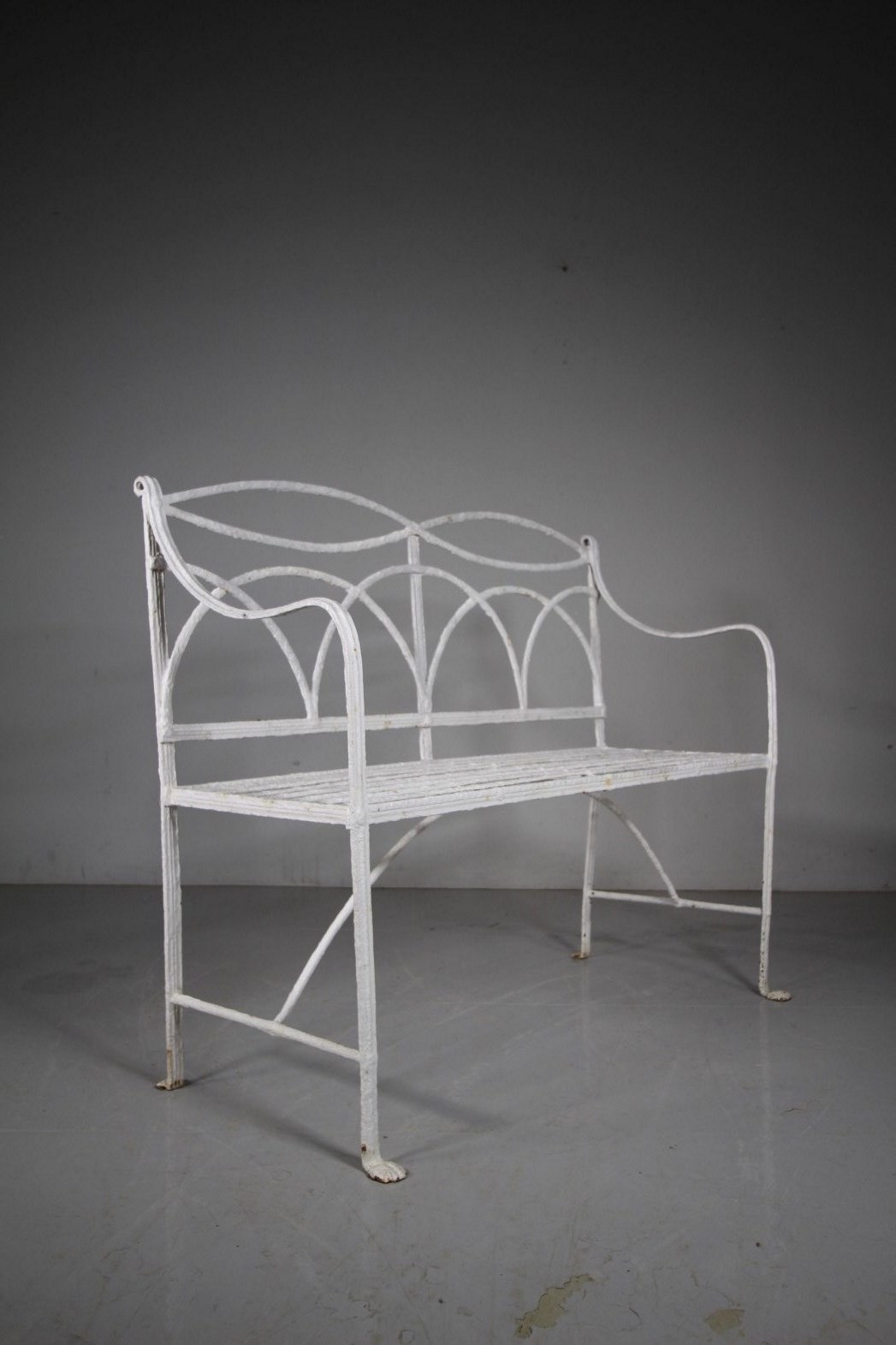 Regency English Antique Garden Bench in Wrought Iron