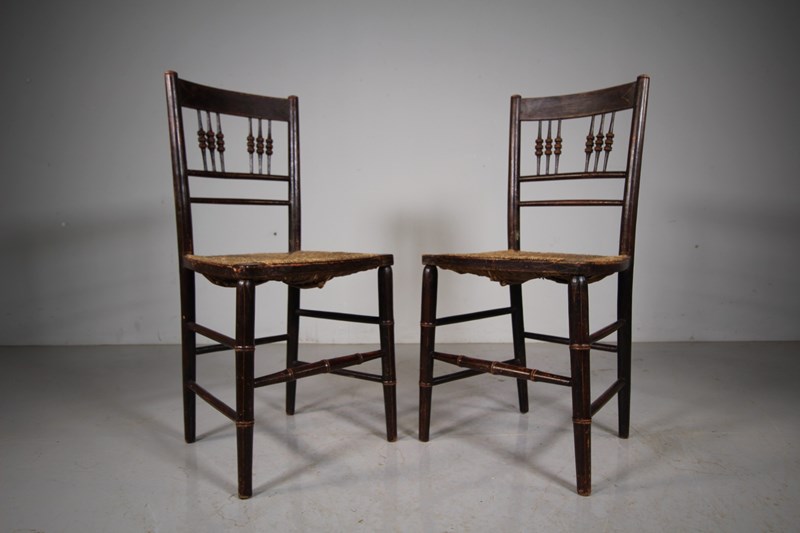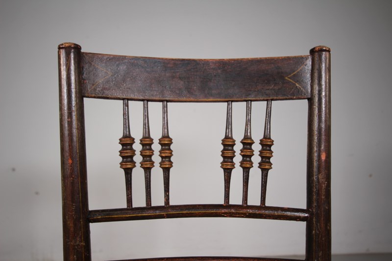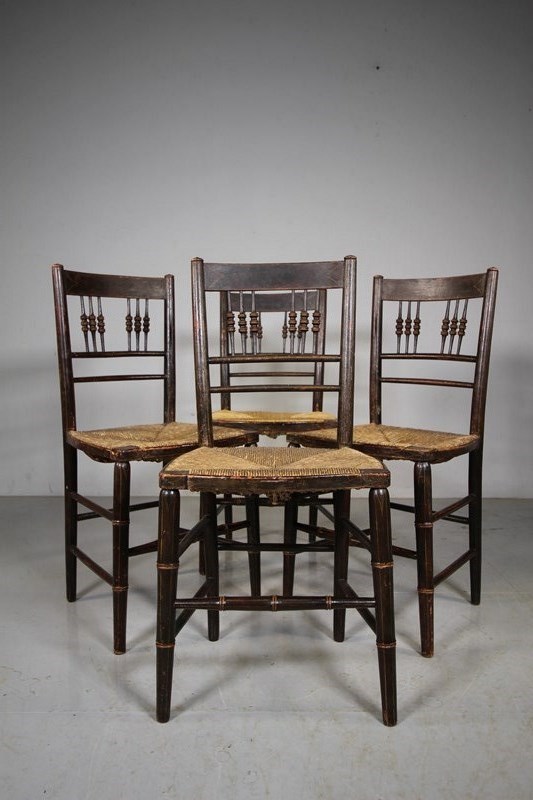 Set Of Four Regency Antique Faux Bamboo Chairs In Original Paint