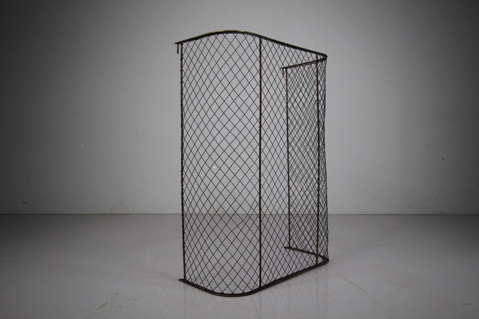 A more unusually proportioned English antique fire guard that dates to around 1870. In excellent condition with all the wireworm intact and undamaged and topped off with the original brass rail. Stands firmly, would suit to guard around a stove as well as a fireplace.