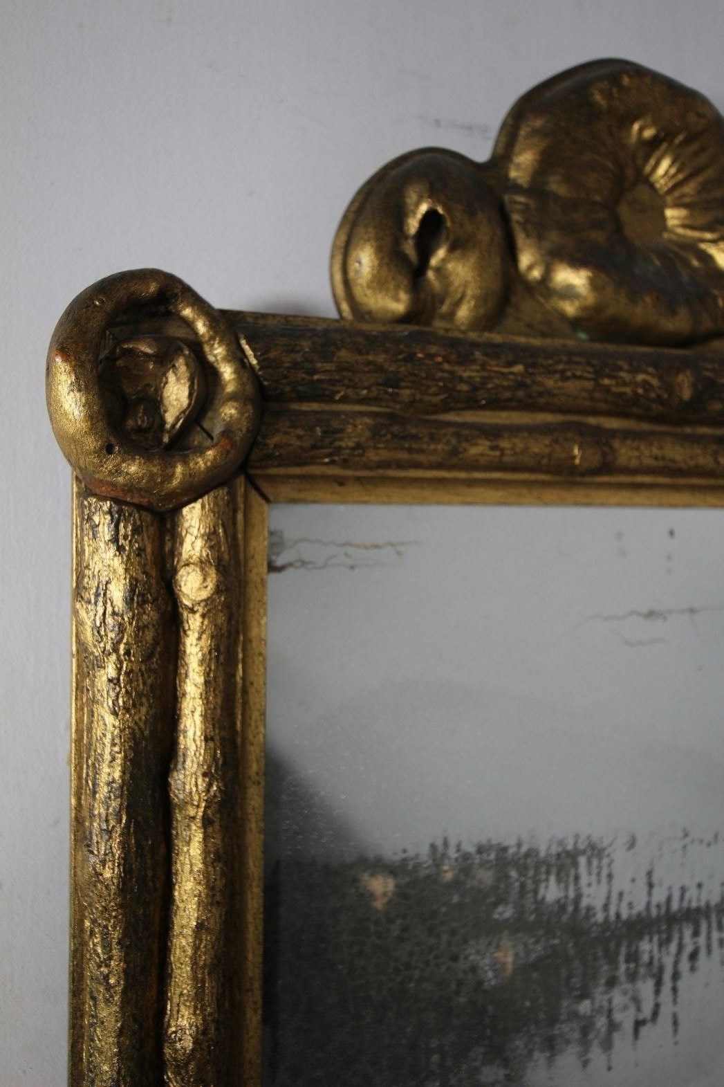 Unusual Grottoesque Antique Gilt Wall Mirror