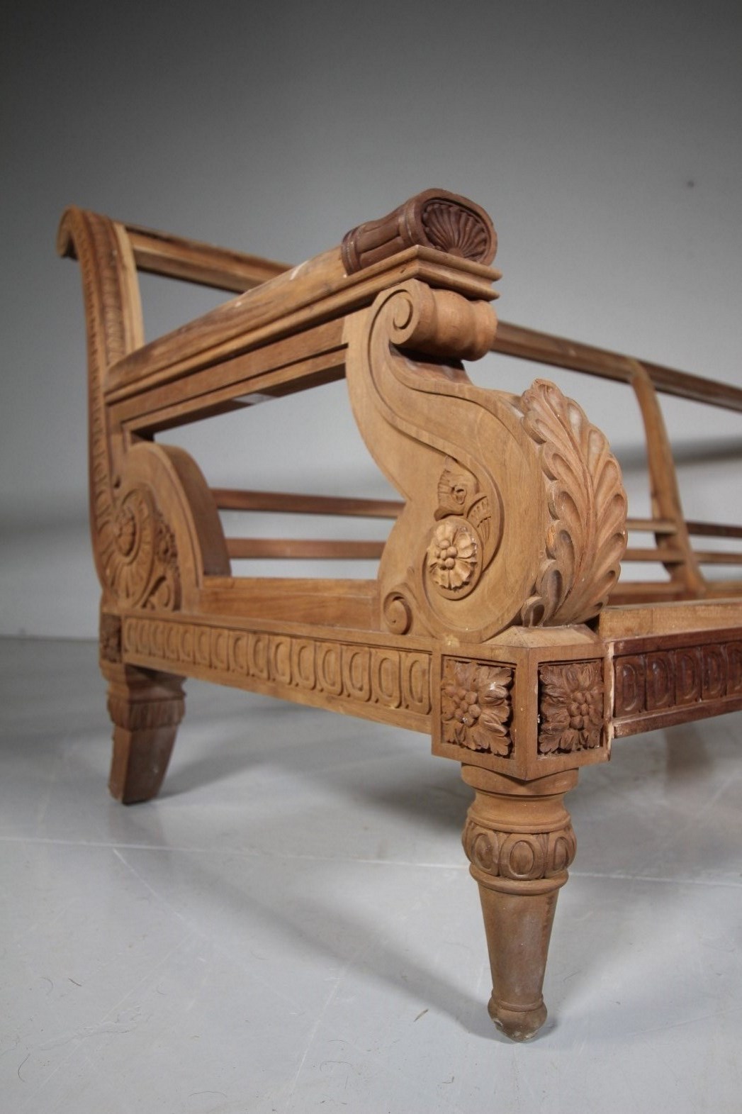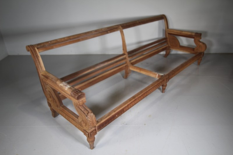 A huge English very high quality made in solid walnut, Country House sofa.  Made at huge expense for Witanhurst House, the largest home in London, only second to Buckingham Palace in the seventies. Vast scale sofas surplus to requirements and never upholstered. A frame of this scale and quality would alone cost upwards of £10,000. As it is the sofa frame, it could easily be adapted, shortened or made into chairs. In excellent solid condition. Has been dry stored for years. A rare opportunity to purchase a wonderful Country House sofa frame with great provenance.