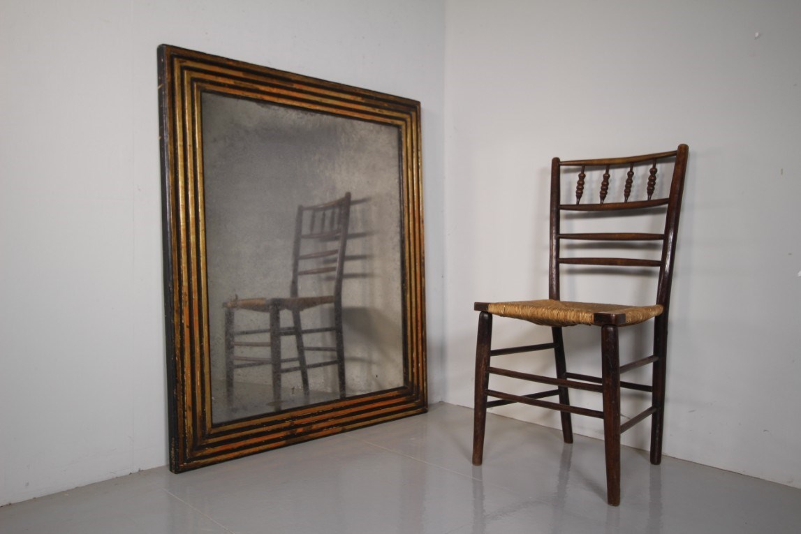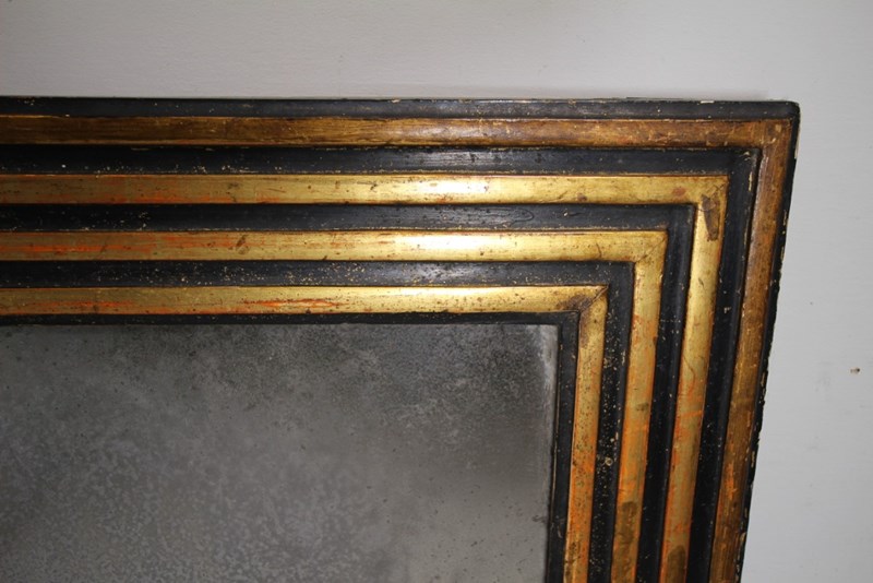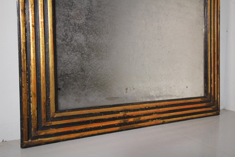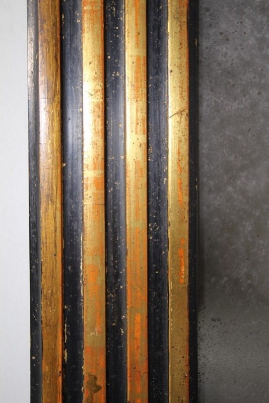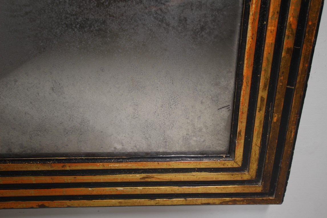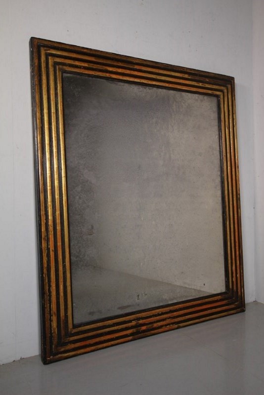 A fabulous Georgian antique wall mirror that has a lovely original gilt and ebonised reeded and moulded frame, complete with the original, wonderful mercury faded mirror plate. Very decorative and in excellent condition, complete with the original pine back boards. A handsome 18th century very original country house antique wall mirror.