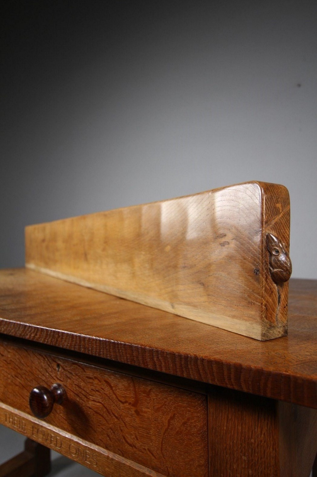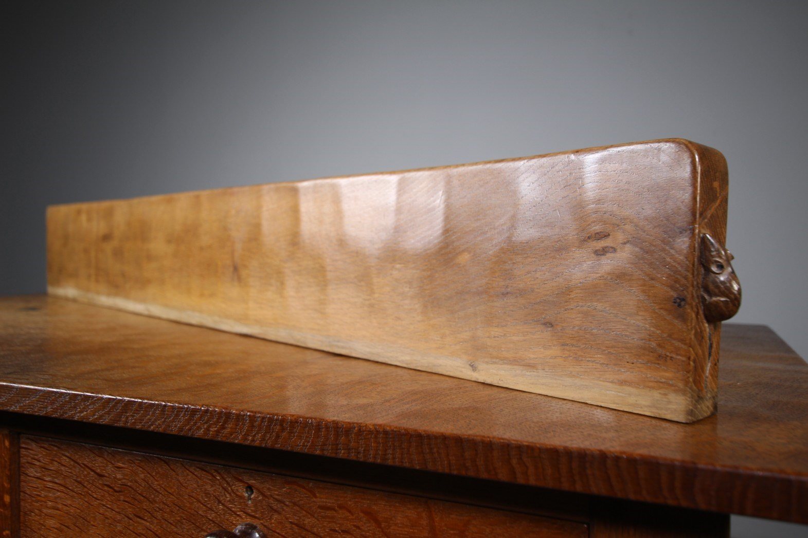 Wonderful 1940’s Long Oak Mouseman Mantle Shelf – Two Mice!