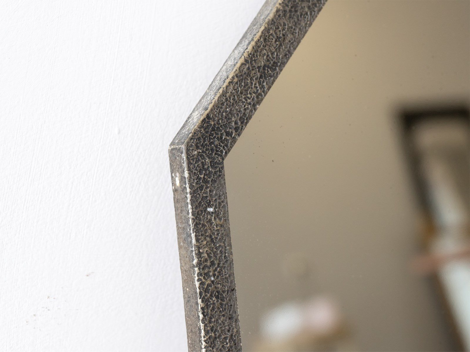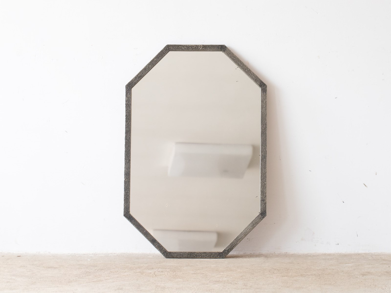 An Art Deco octagonal mirror with textured frame. French, c. 1930s. Stock ref. #2915 In very good order retaining its original plate and backboard. 86 x 56.5 x 2 cm 33.9 x 22.2 x 0.8 "