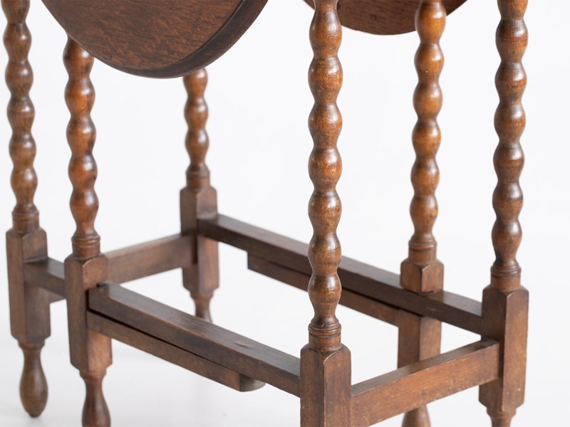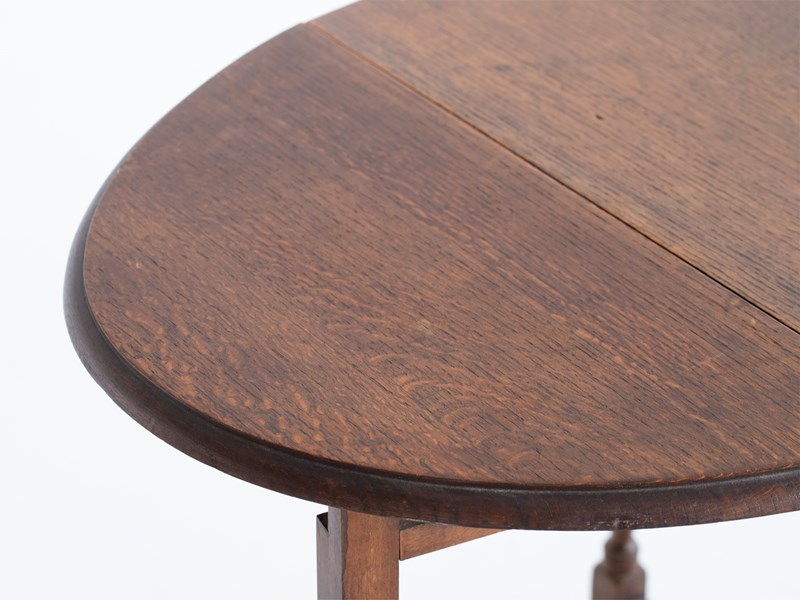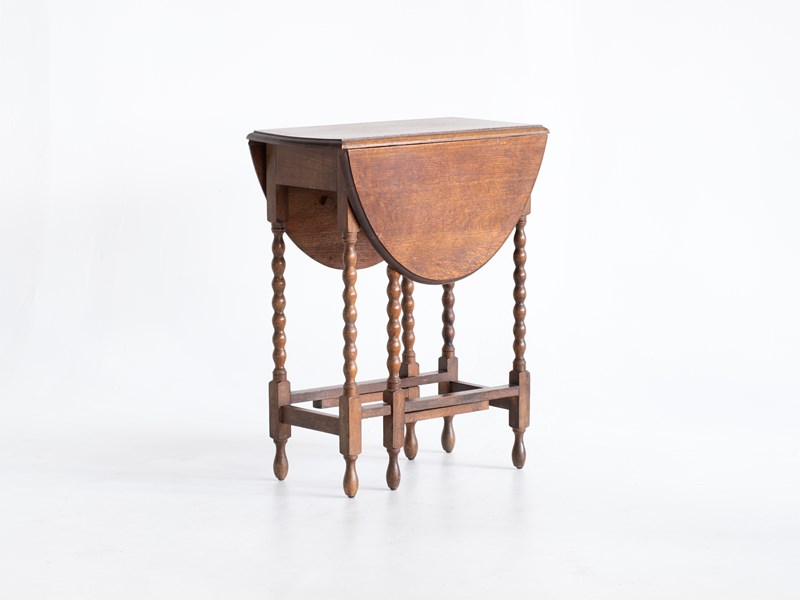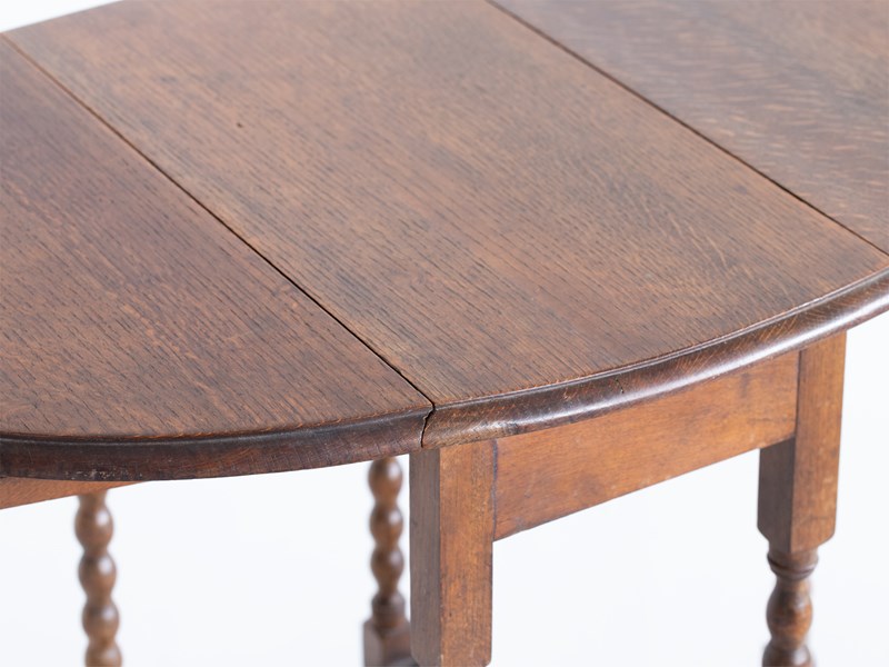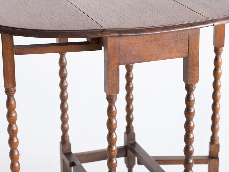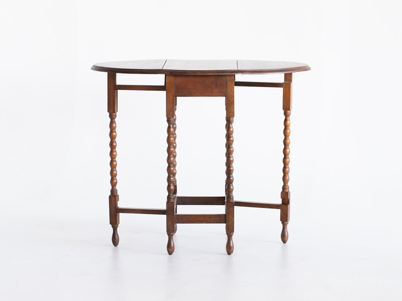An oak gateleg table raised on six bobbin-turned supports. French, c. 1950s.