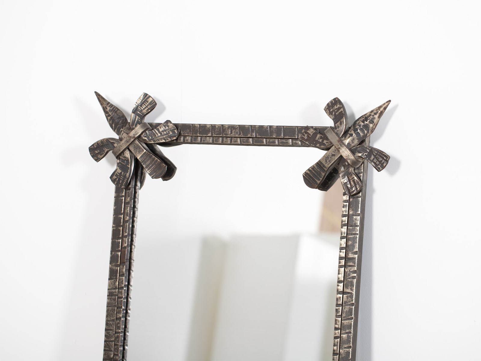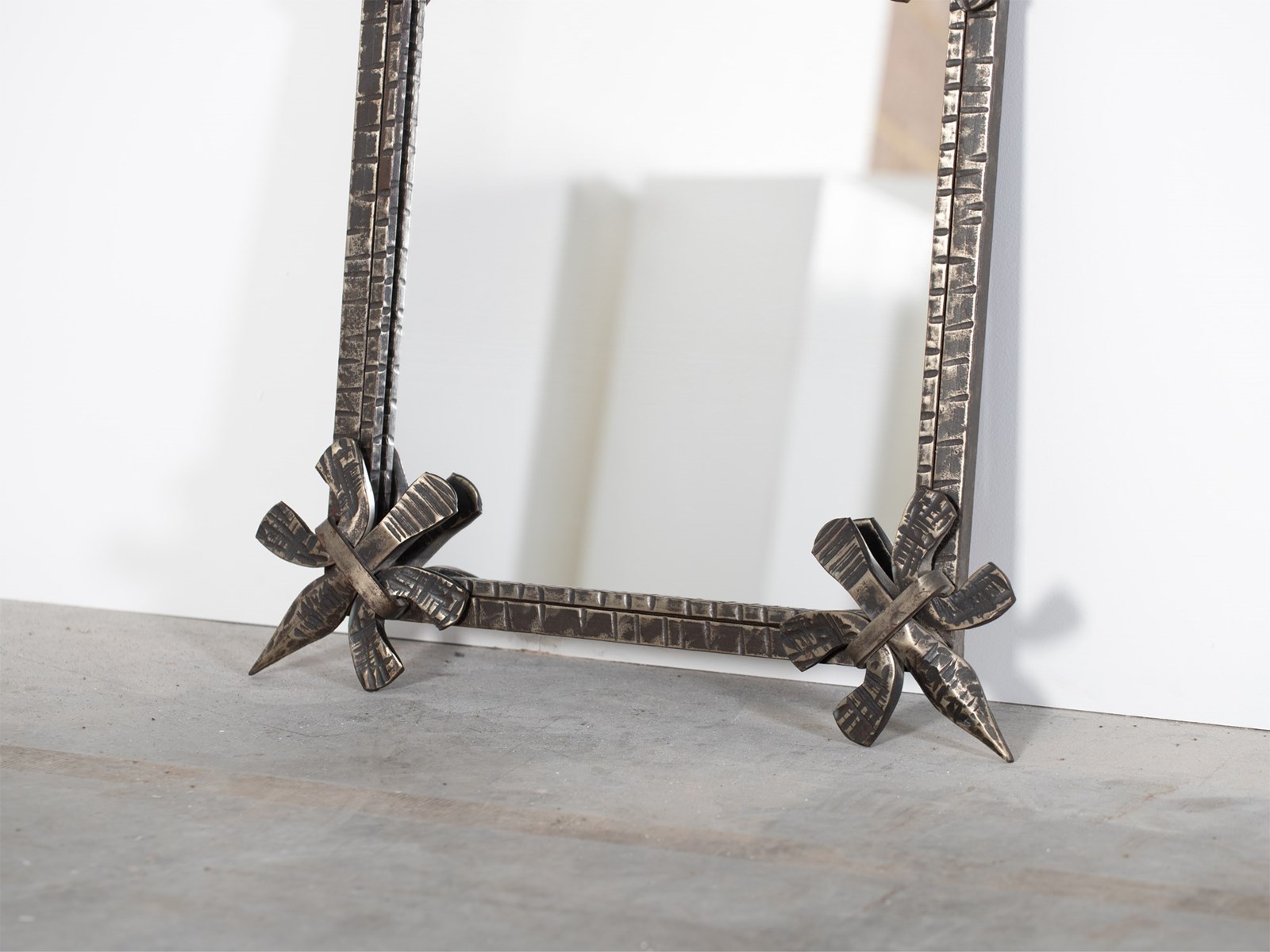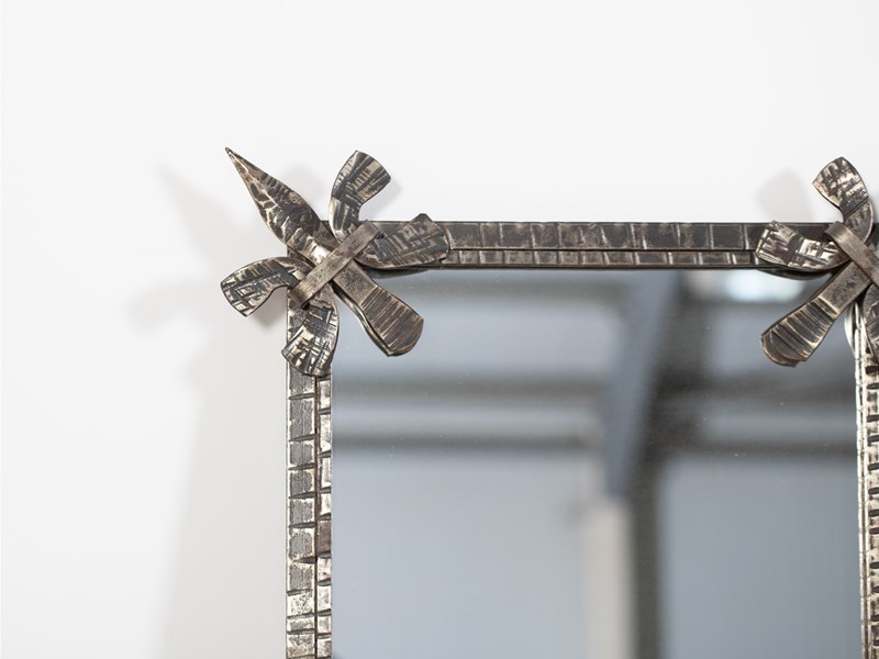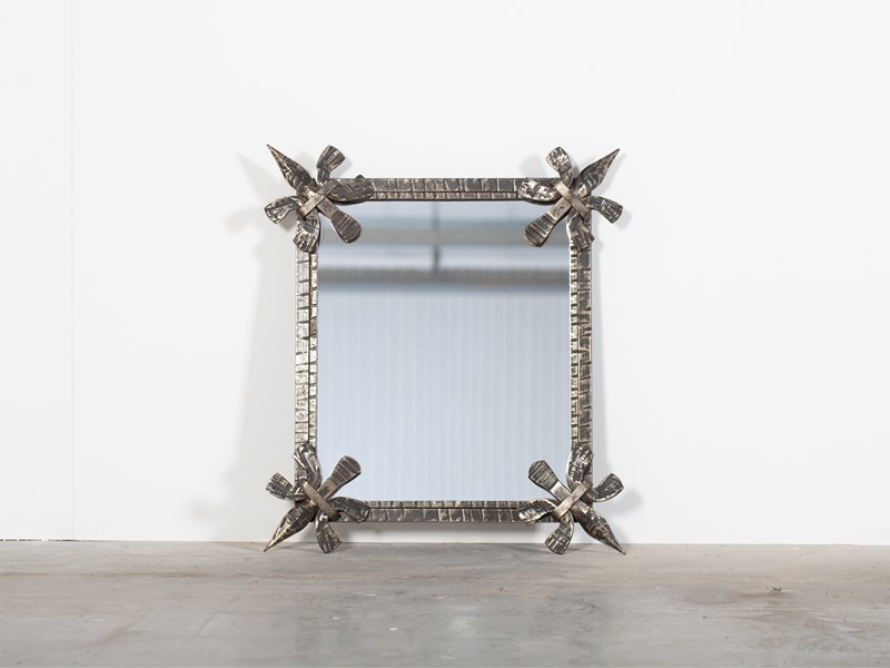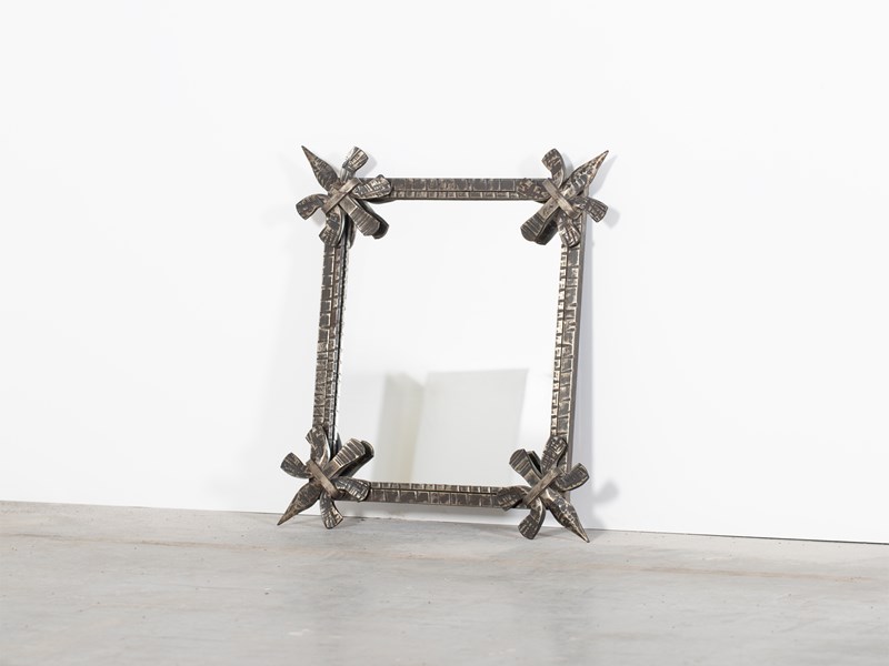 A brutalist forged iron mirror. French, c. 1970s.