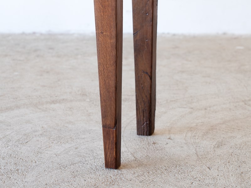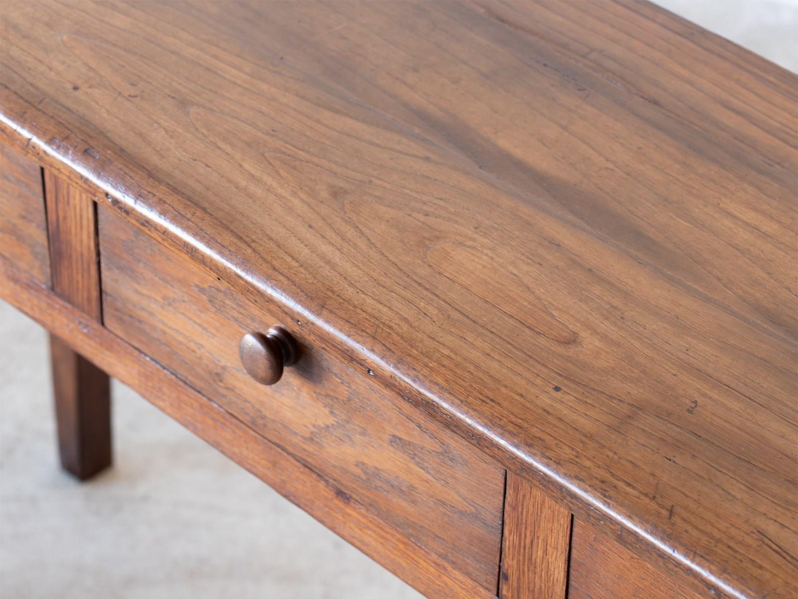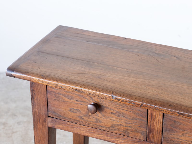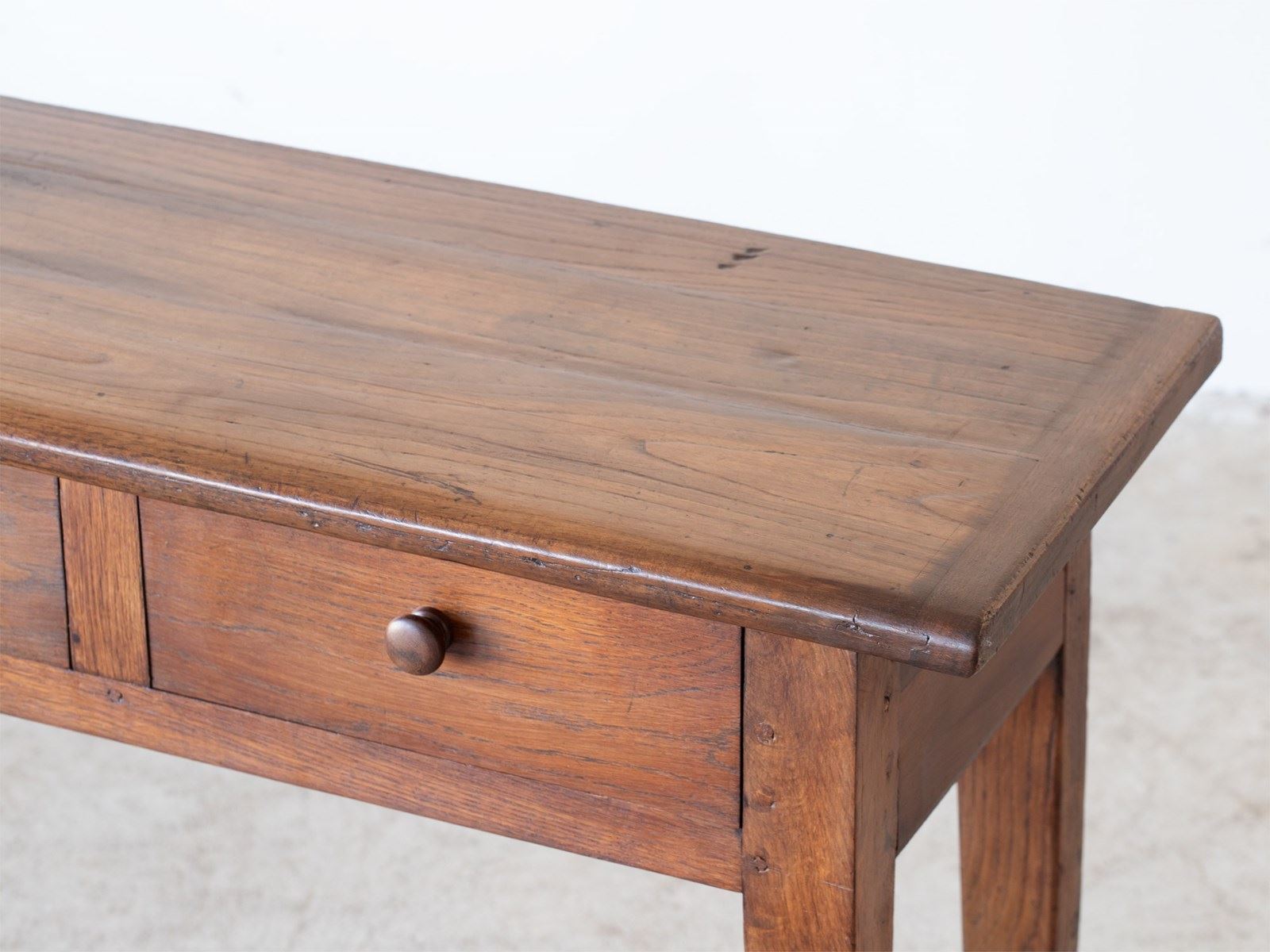 A three-drawer chestnut serving table or console adapted from a larger antique French table.