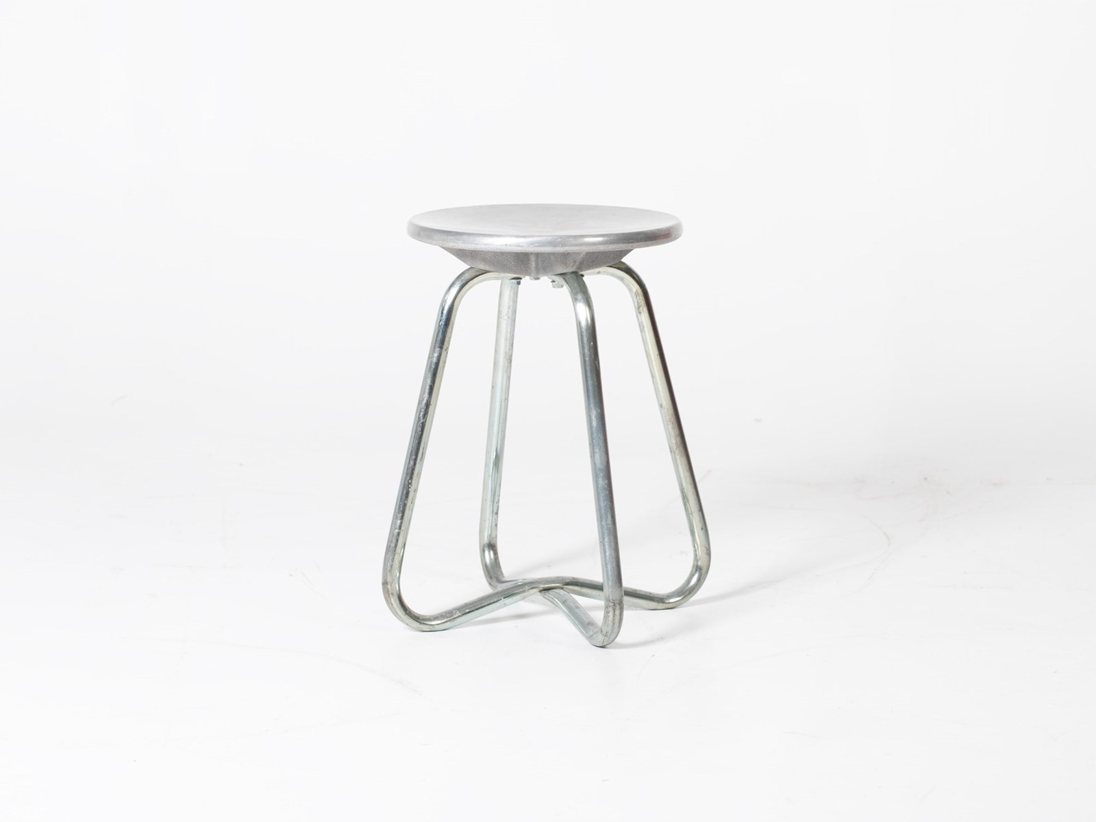 A chromed aluminium and tubular steel stool, c. 1970s.