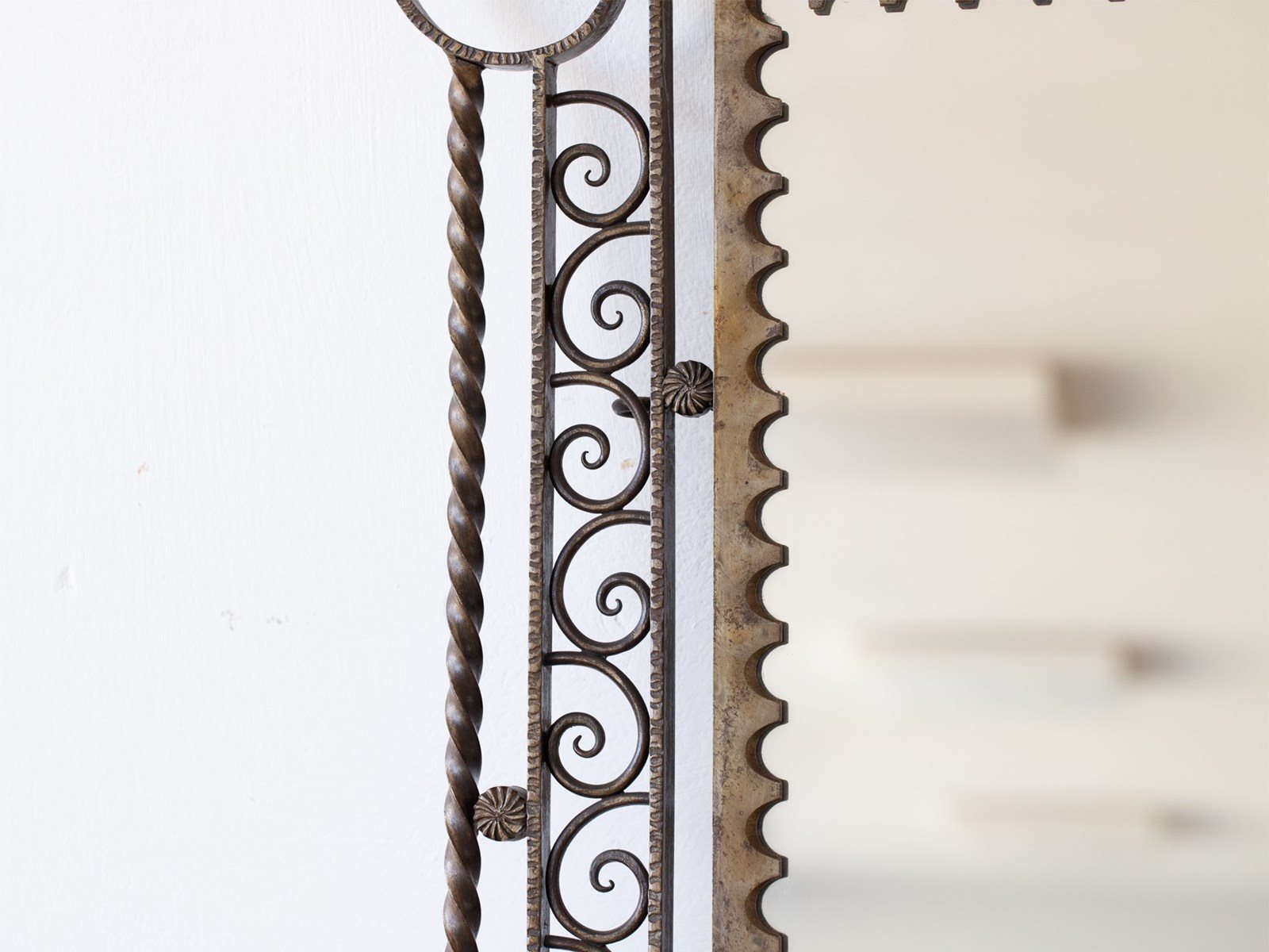 A large Art Deco wrought iron mirror. French, c. 1930s.