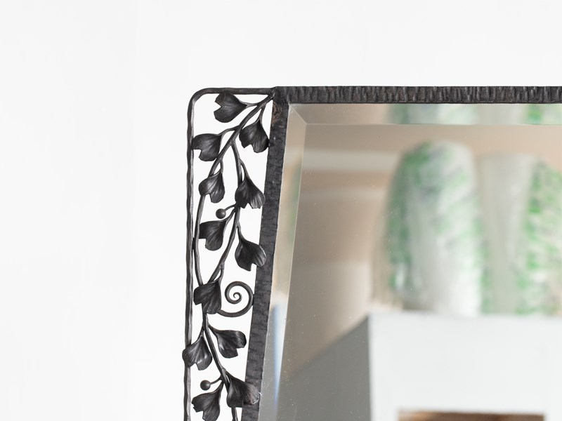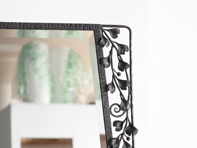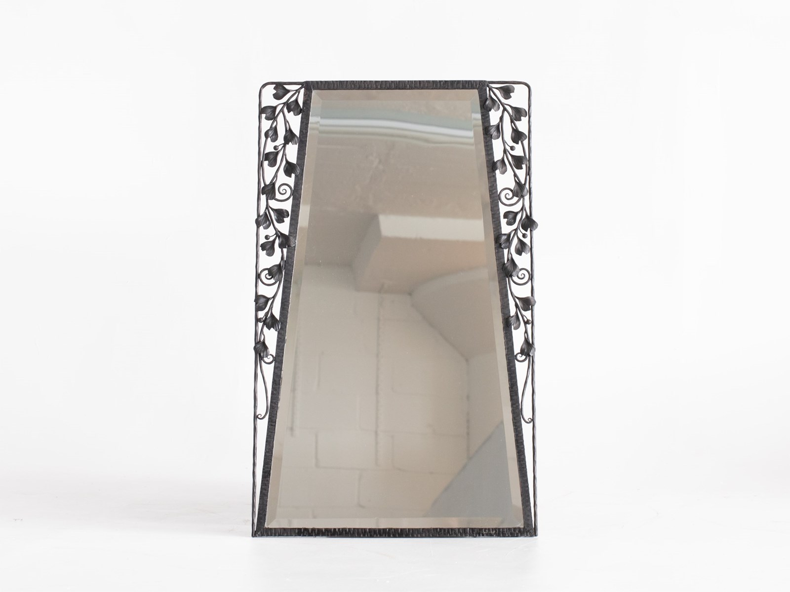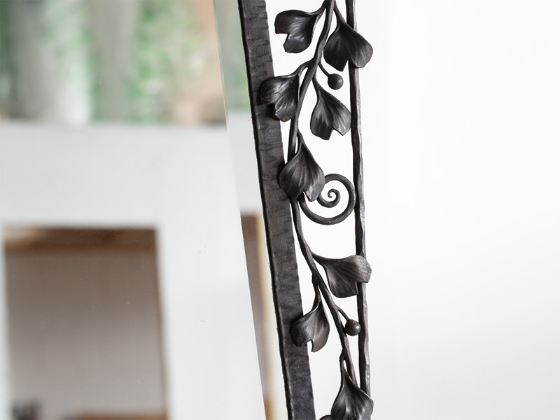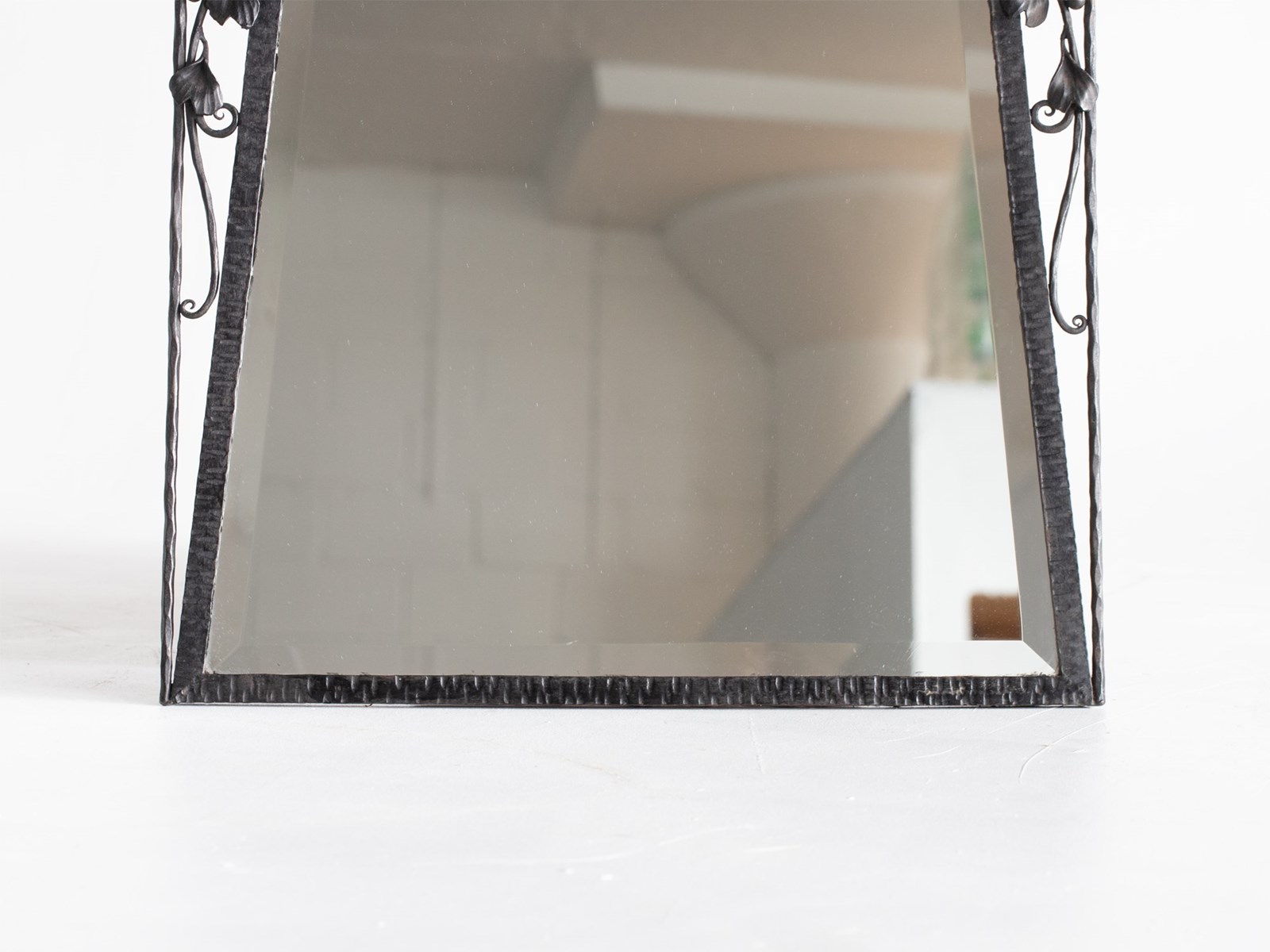 An Art Deco forged iron mirror with floral decoration. French, c. 1930s.