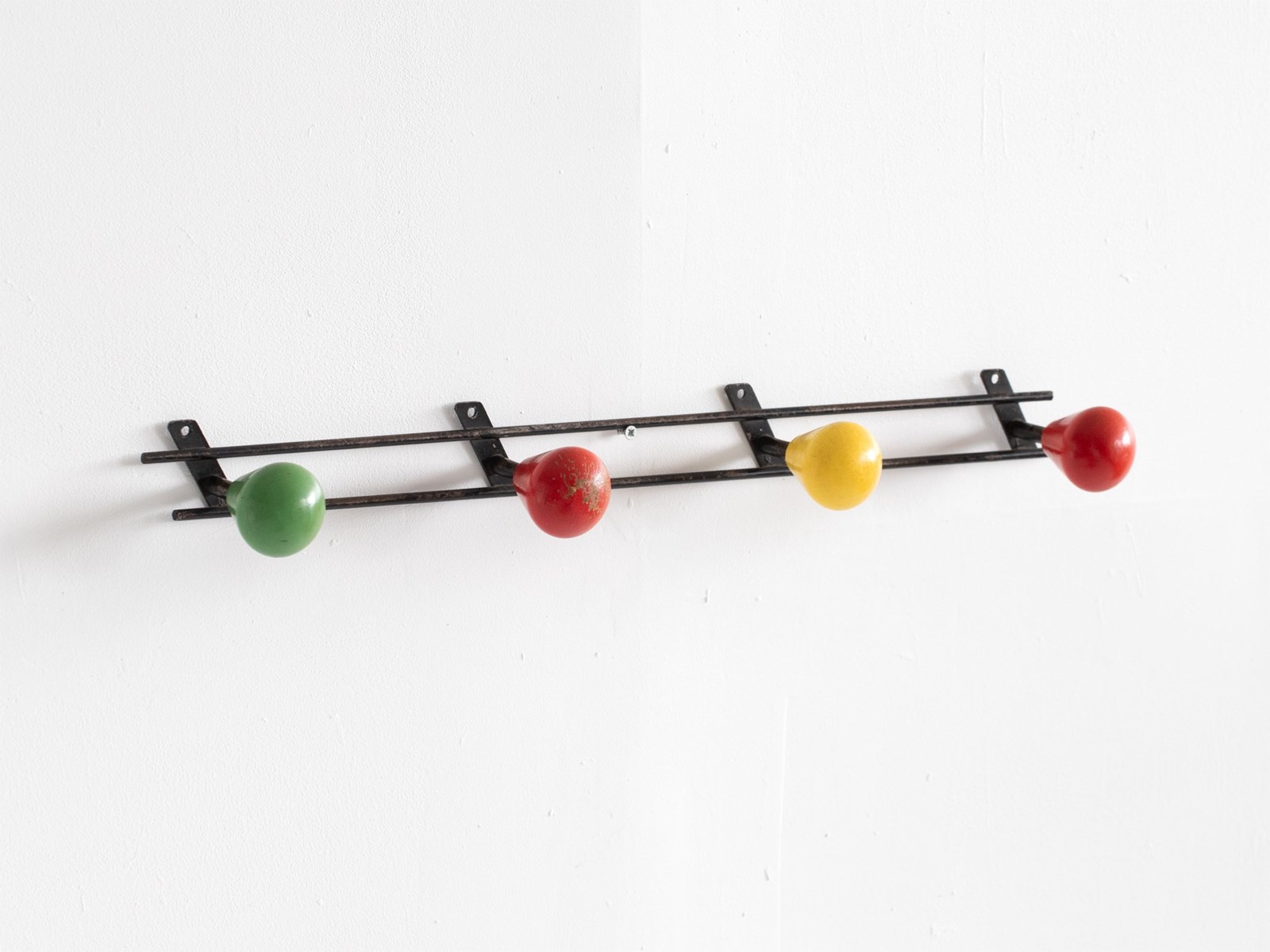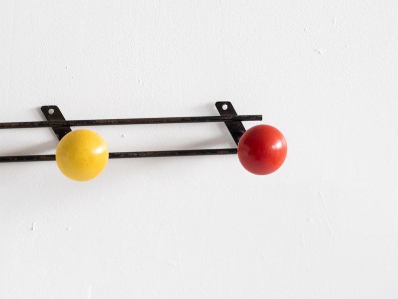 An atomic coat rack in its original paint. French, c. 1960s.