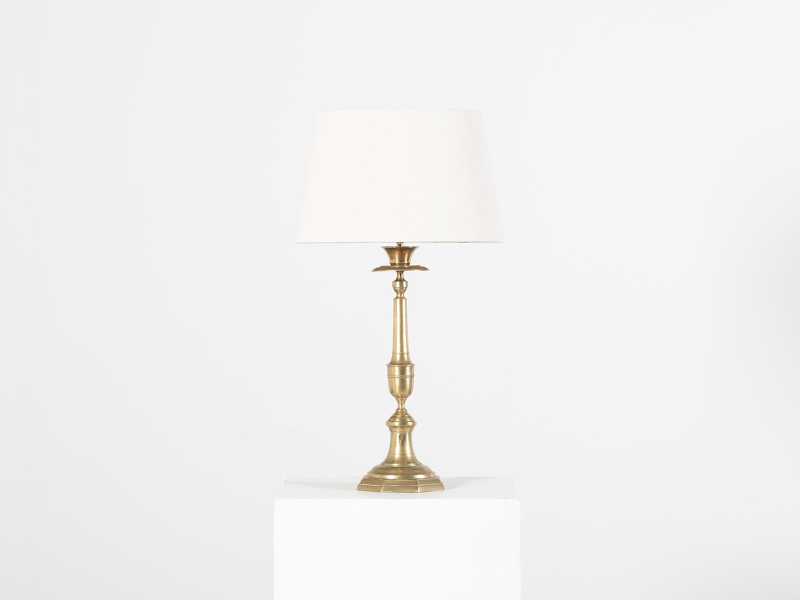 A patinated brass table lamp. French, c. 1940s.