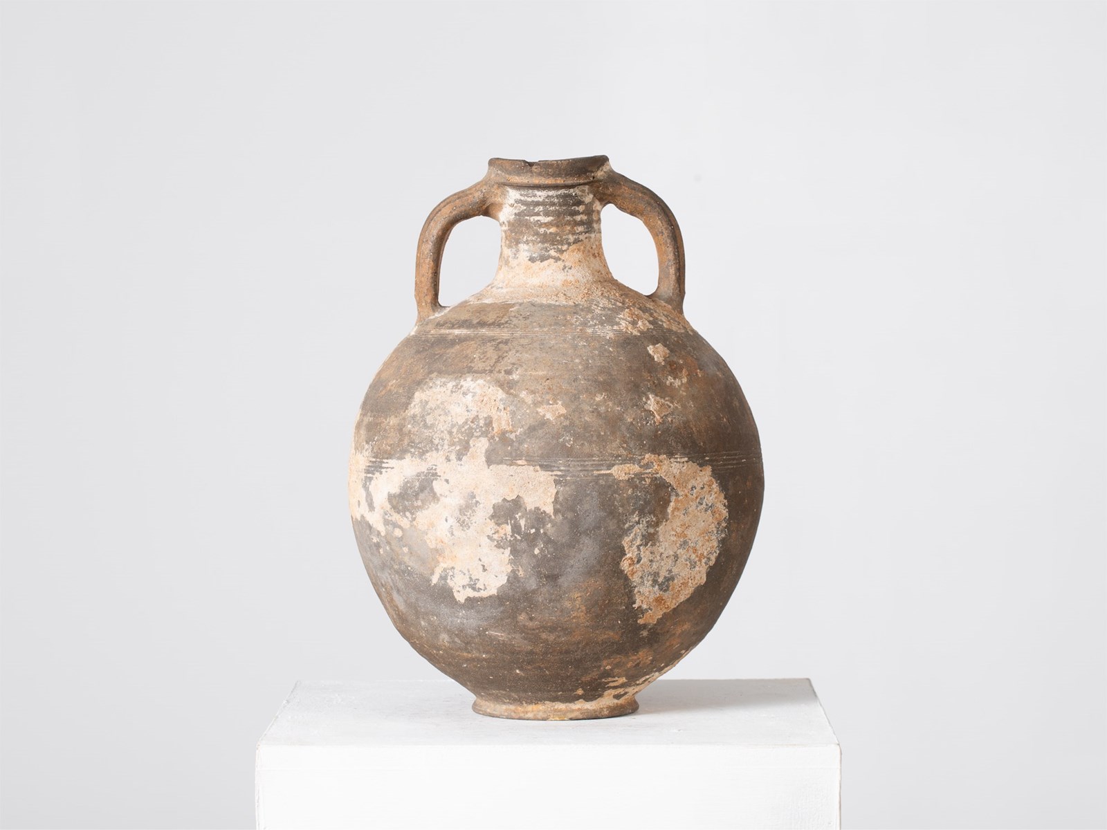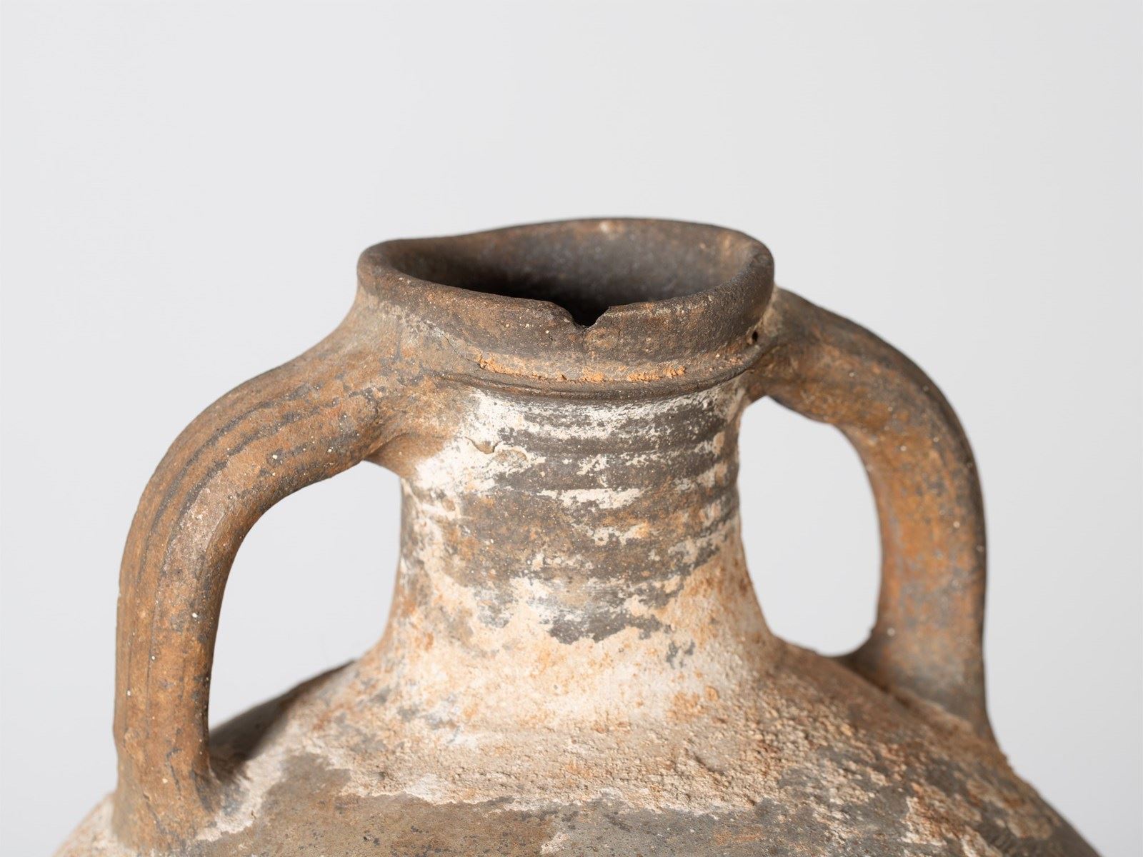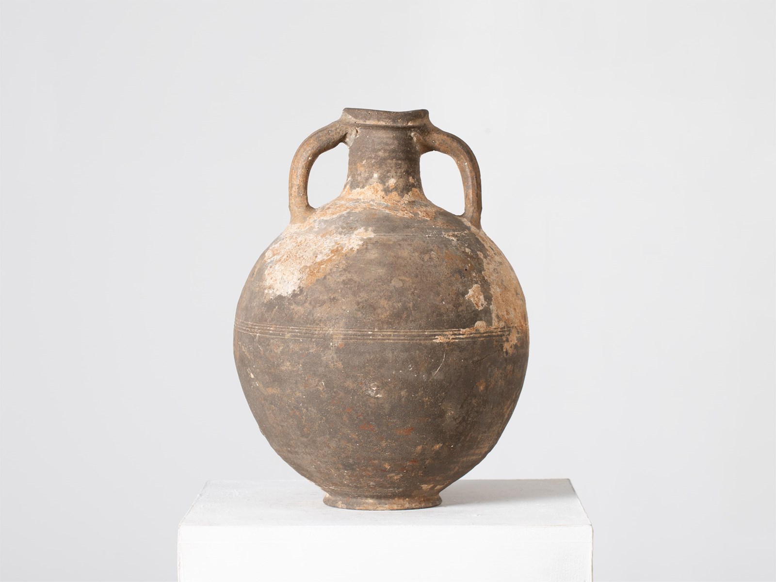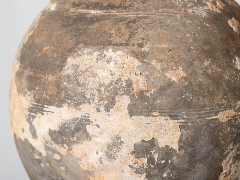 A large, heavily-patinated earthenware storage vessel. French, 18C.