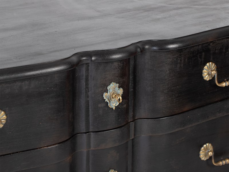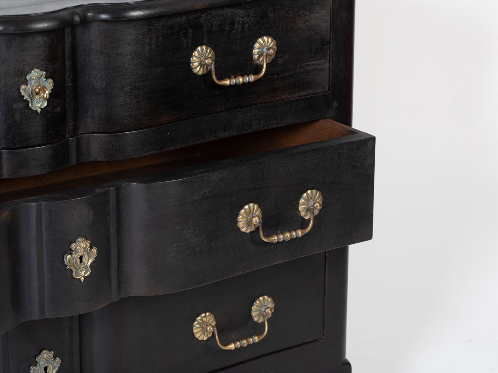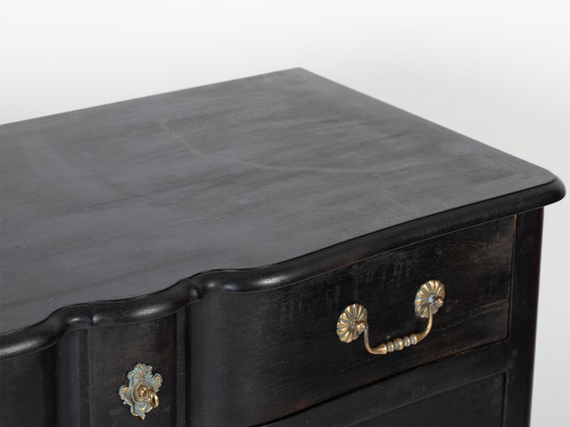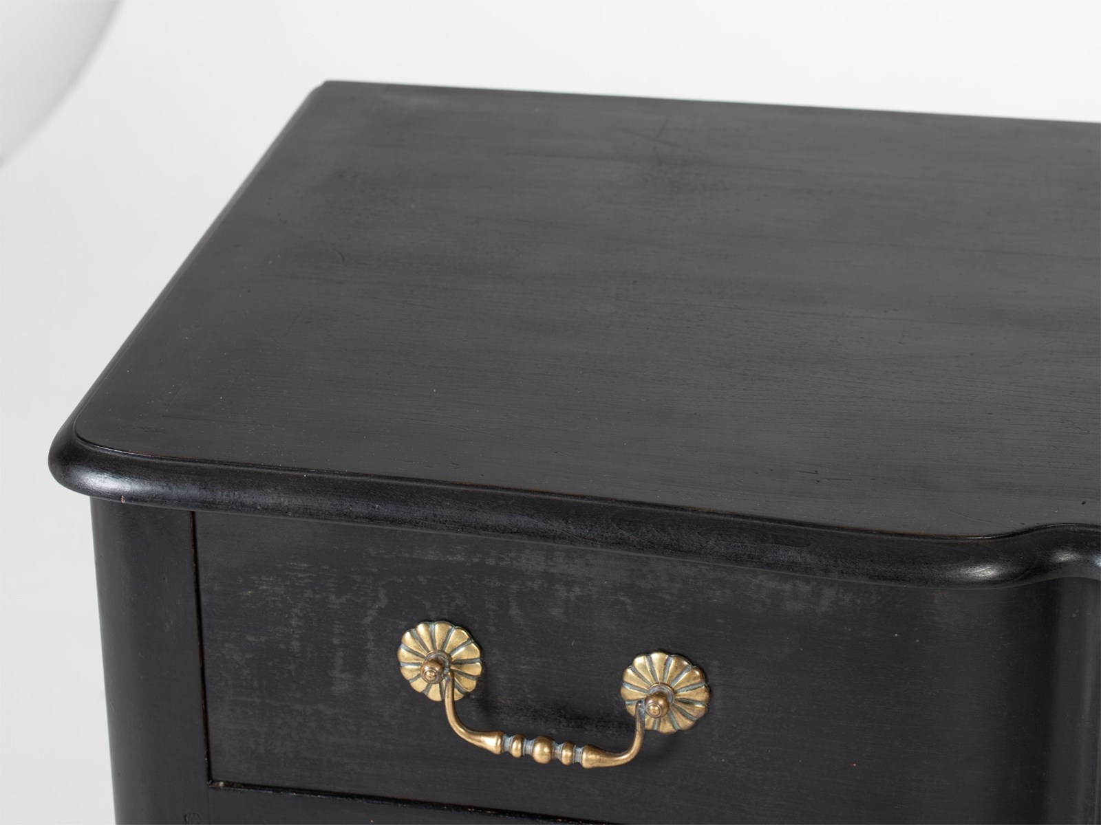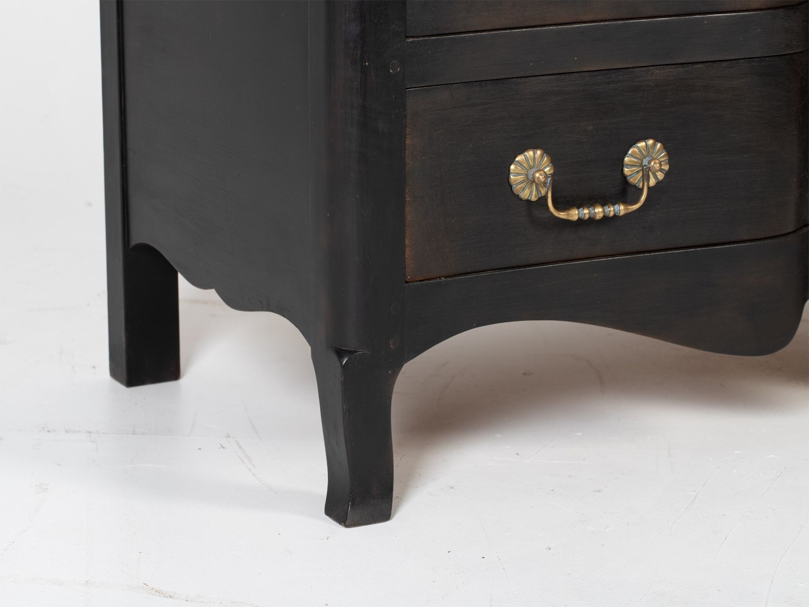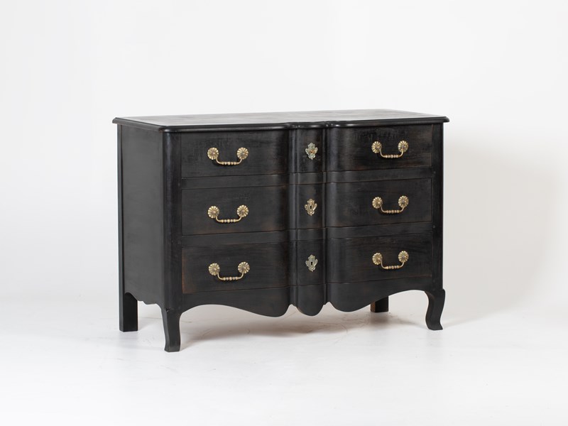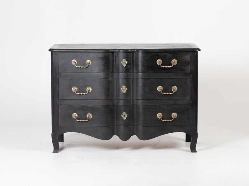 An ebonised commode or chest of three long drawers in the Louis XV taste. French, mid 20C.
