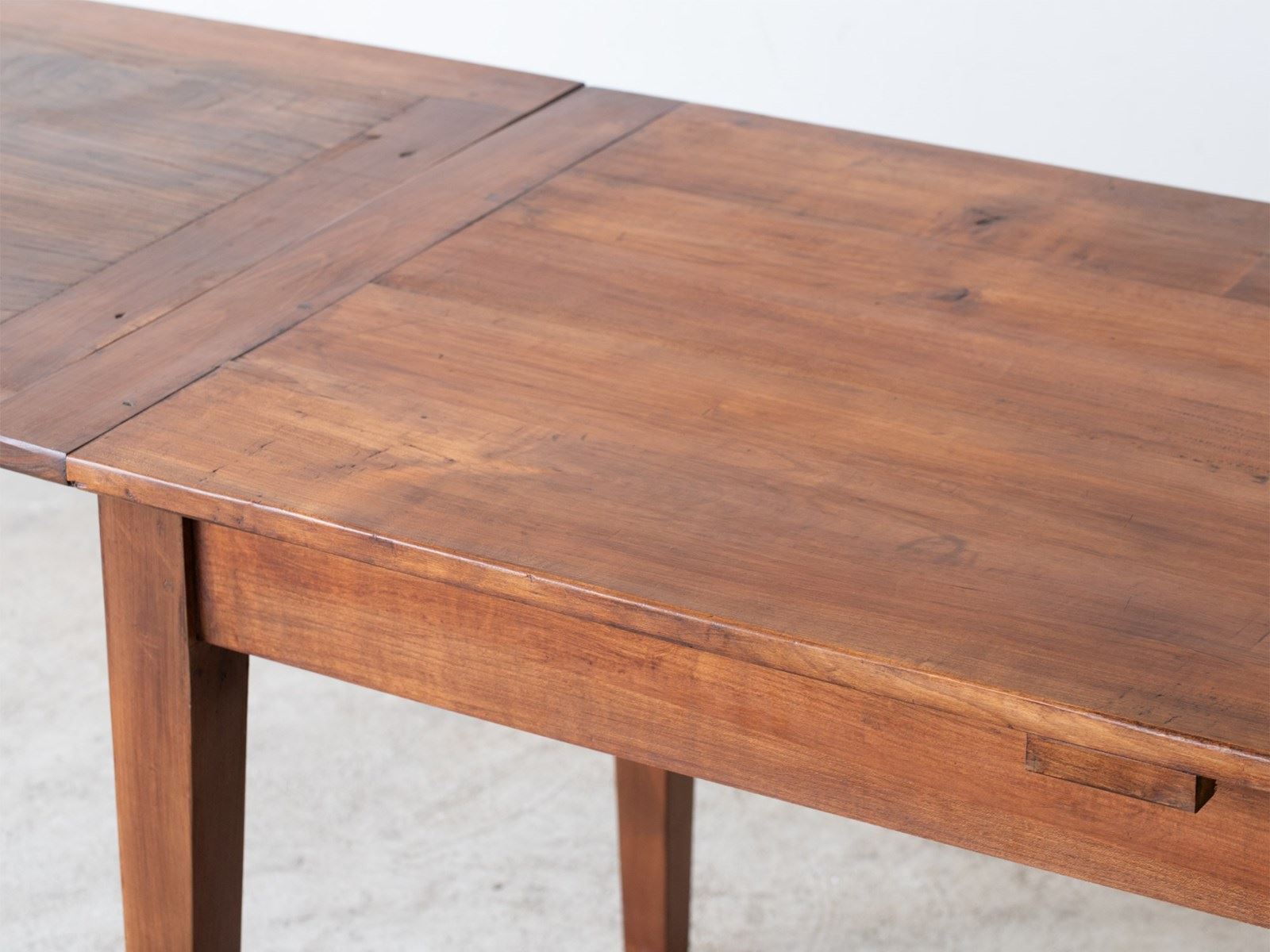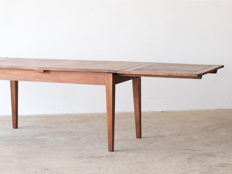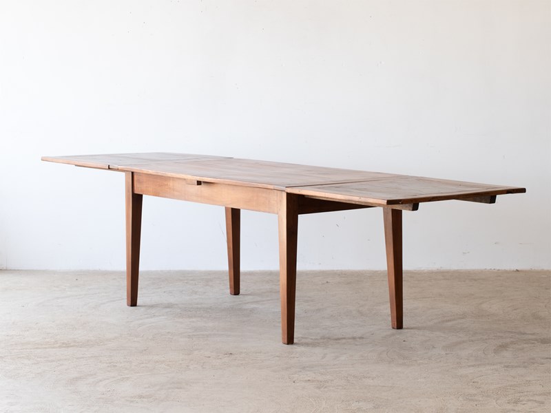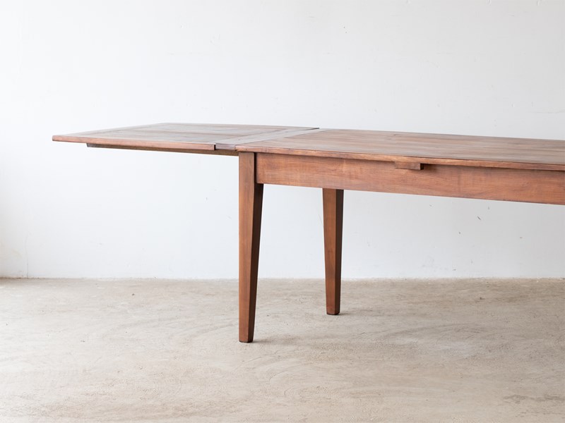 An extending cherrywood farmhouse dining table. French, early 20C.