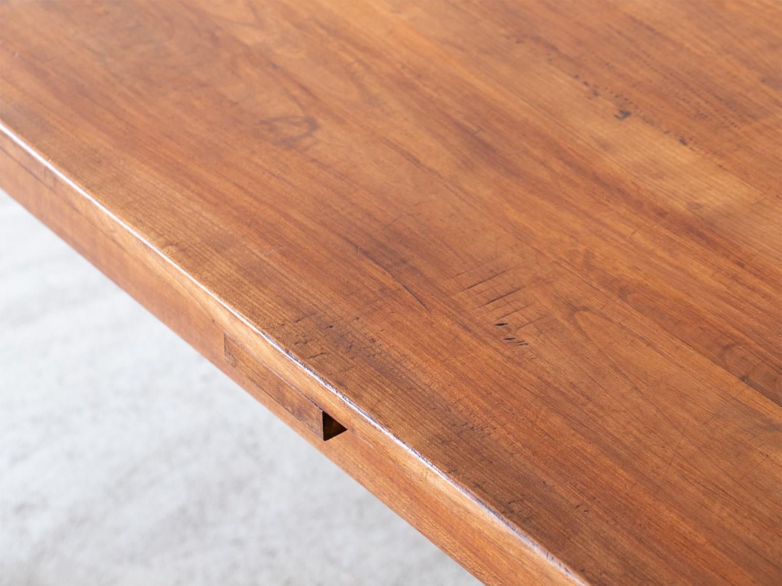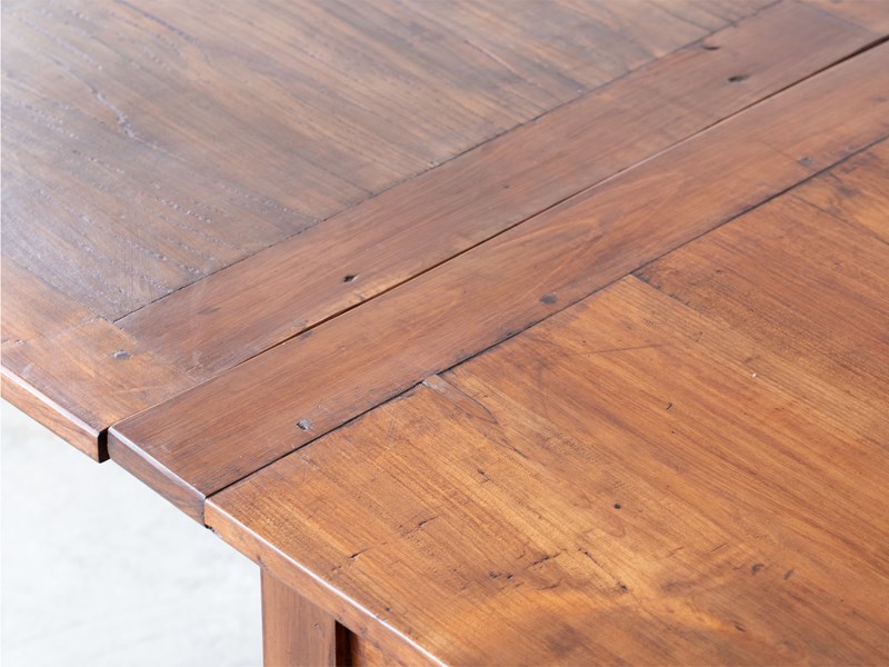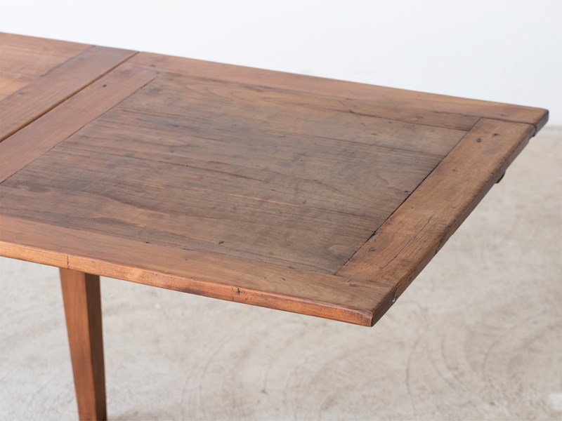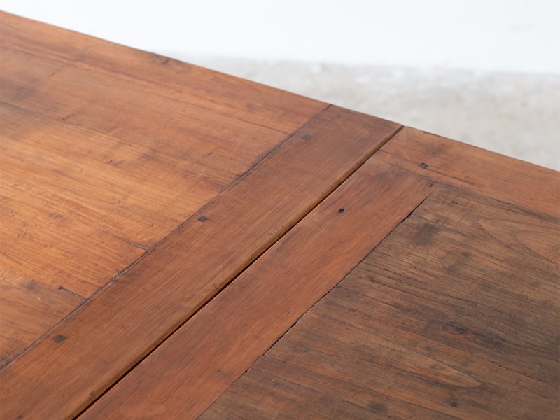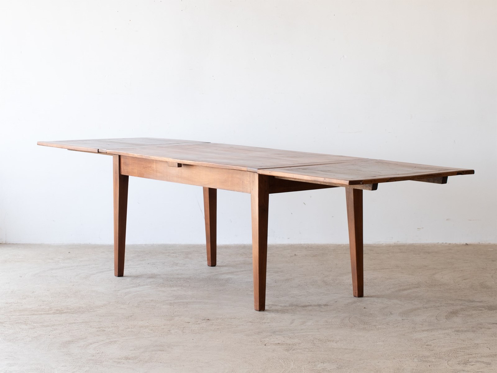 An extending cherrywood farmhouse dining table. French, early 20C.