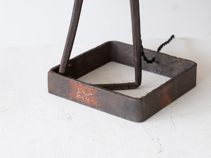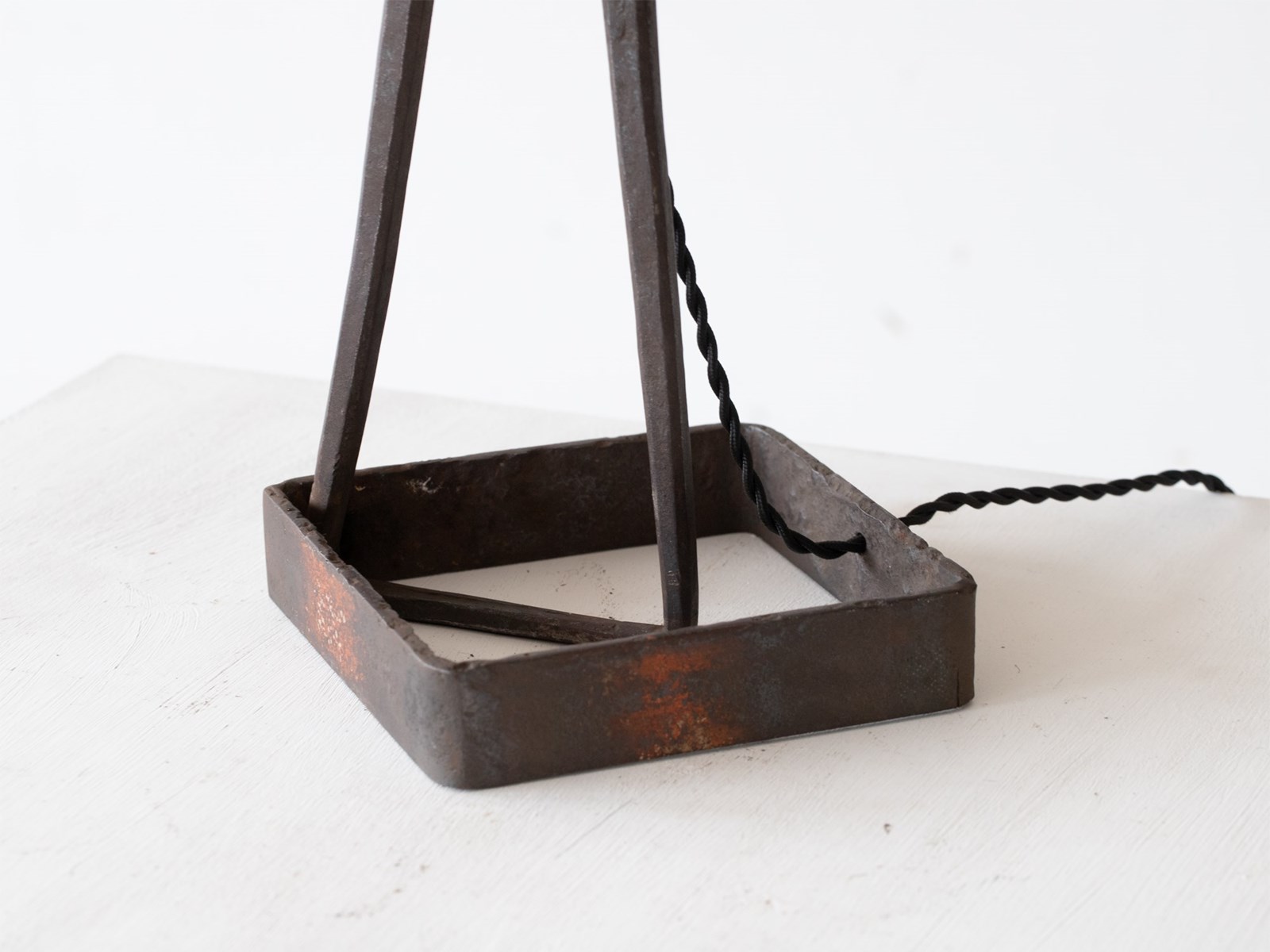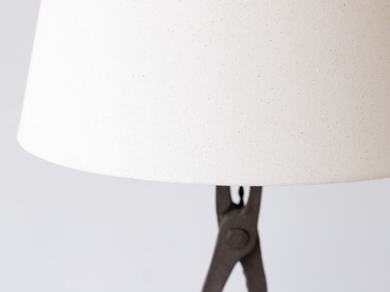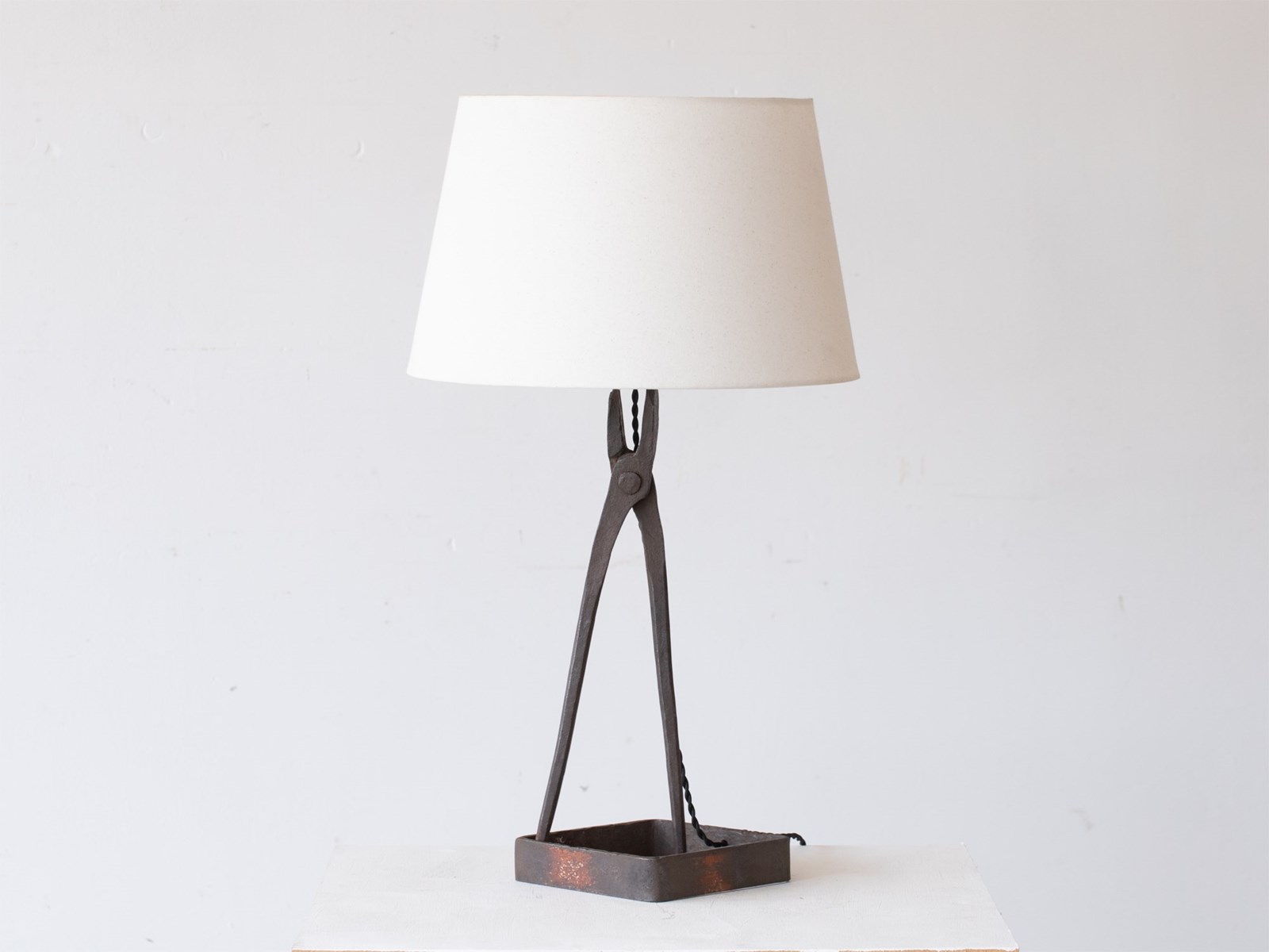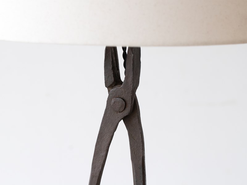 A folk art table lamp formed from antique iron pliers. French, c. 1950s.