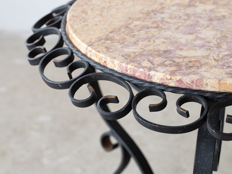French Marble & Iron Side Table