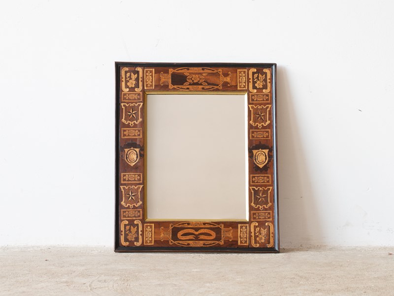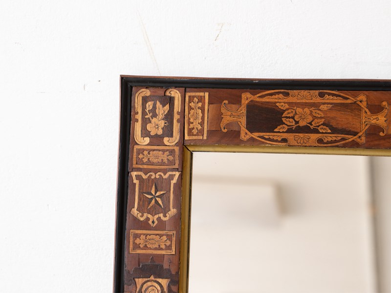 A decorative marquetry marriage mirror signed E. Robert. French, c. 1906.