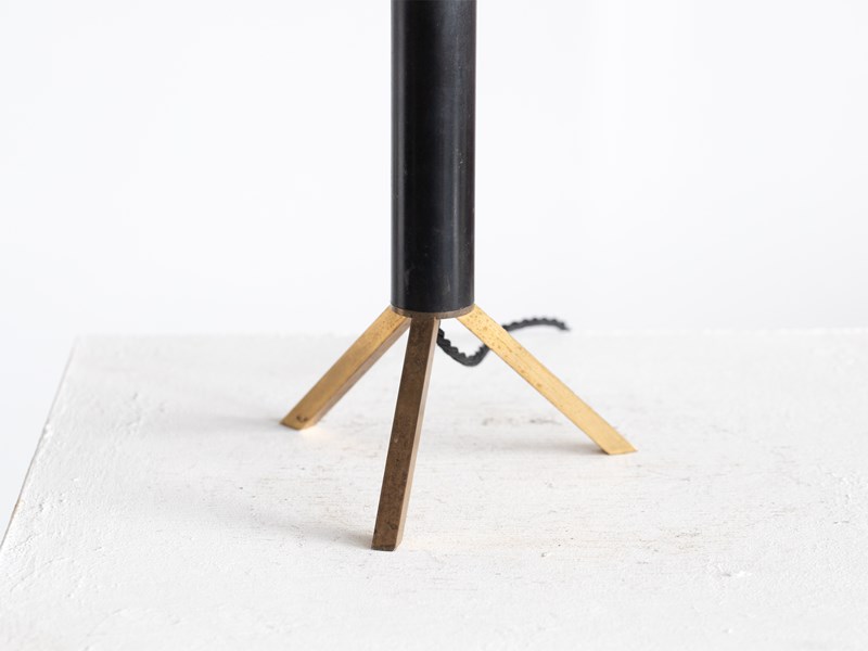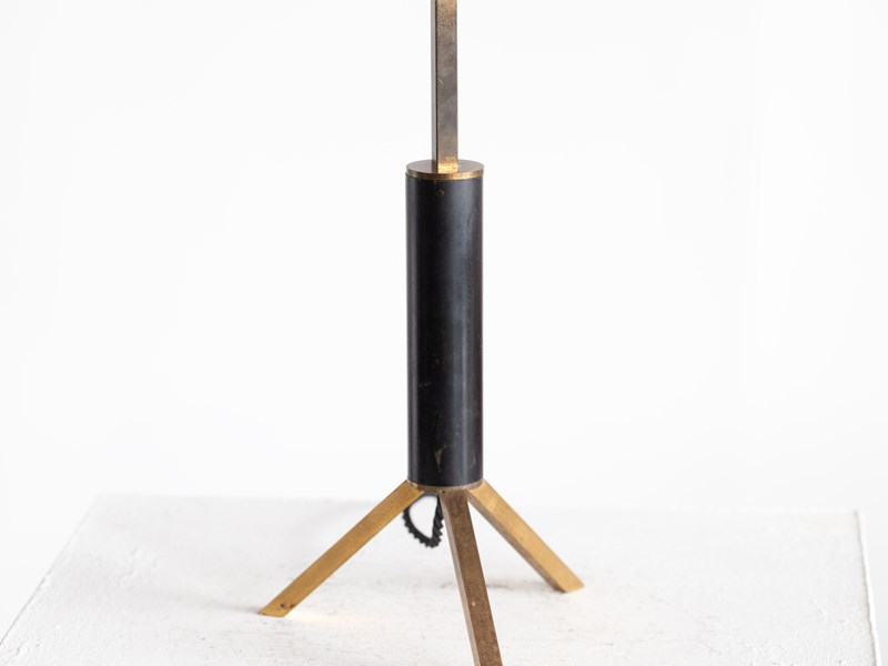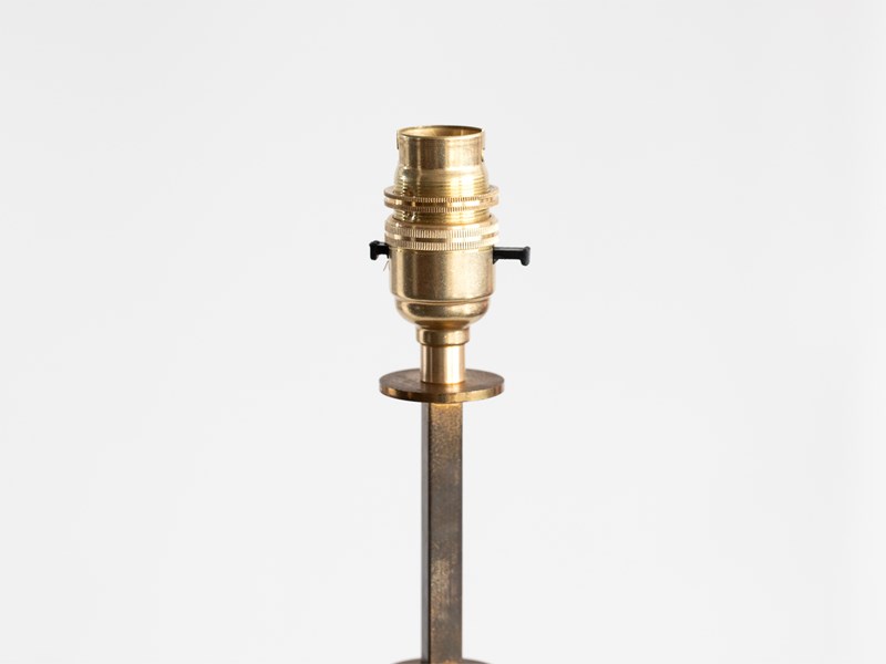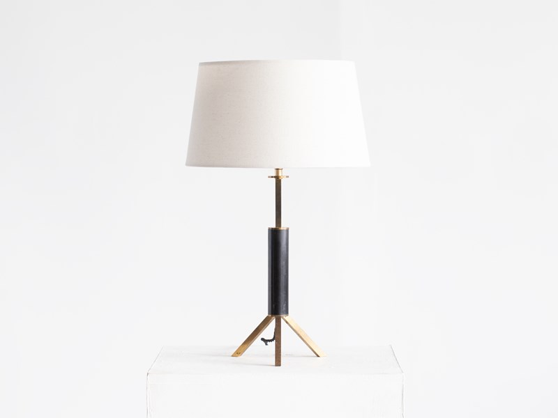 A gilt bronze and blackened steel table lamp. French, c. 1950s.