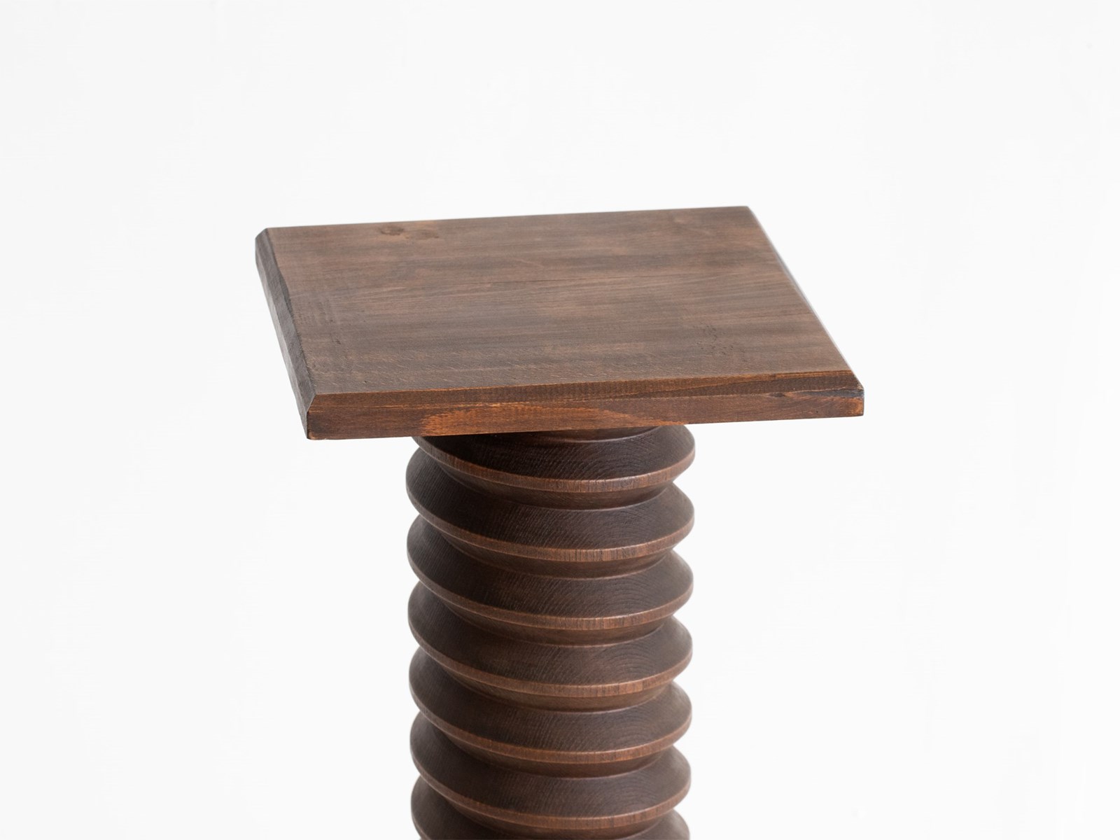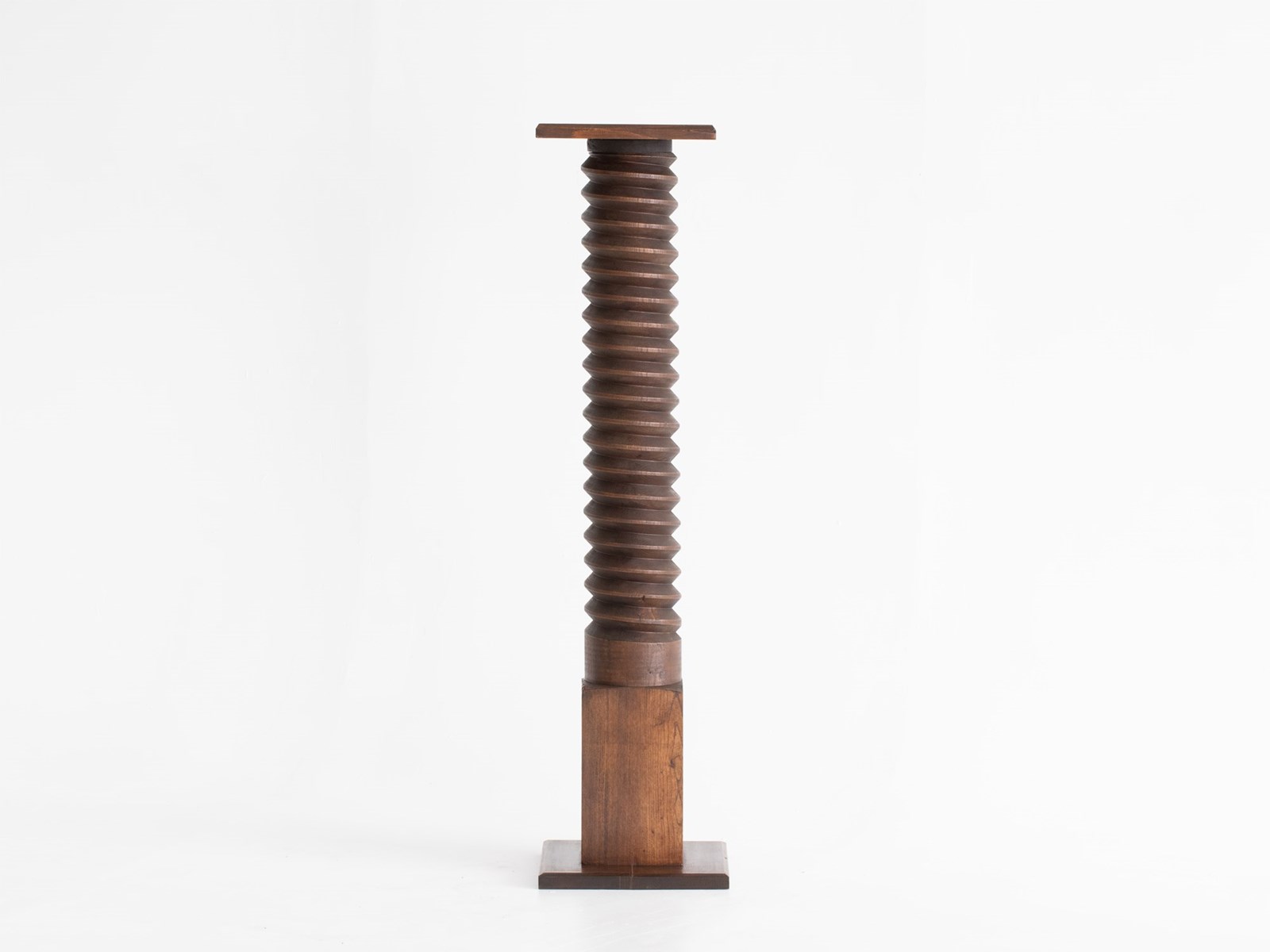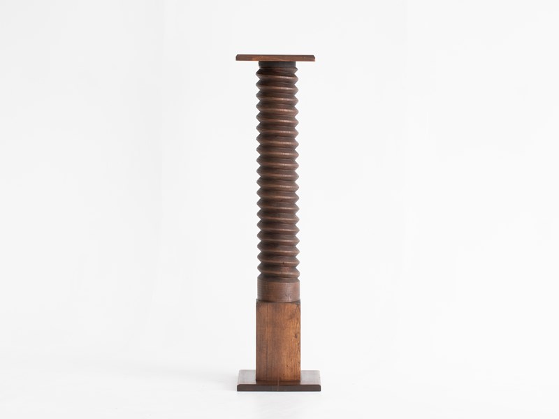 A monumental oak and beech screw column or pedestal. French, mid 20C.