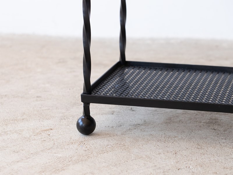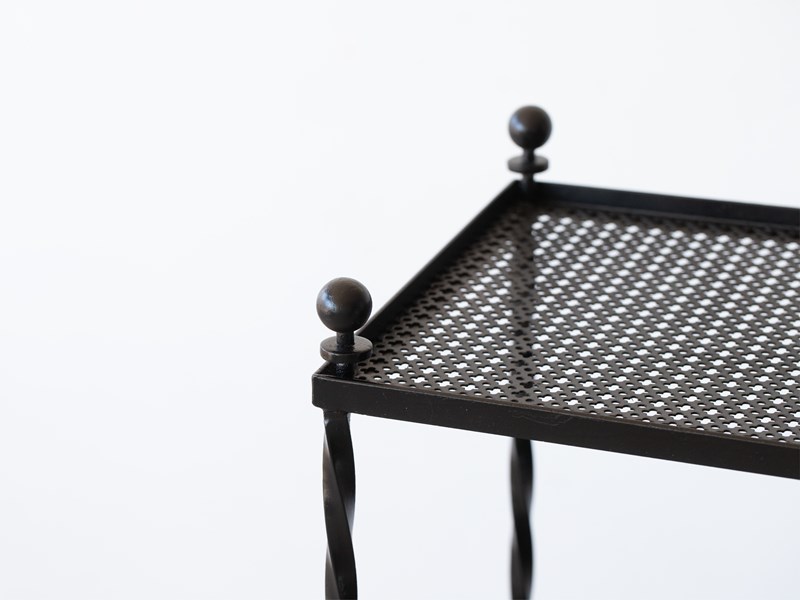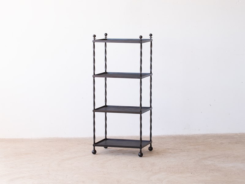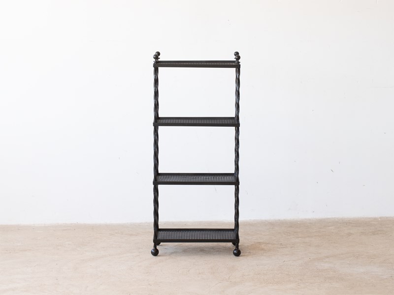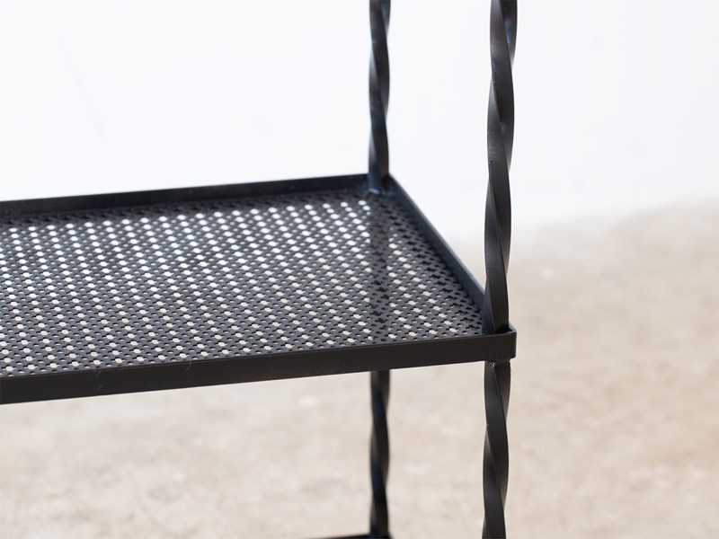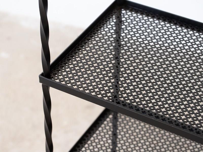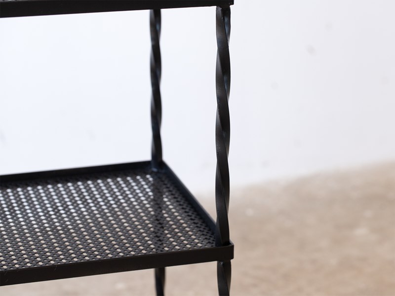 A perforated steel etagere or shelving unit in the manner of Mathieu Matégot. French, mid 20C.
