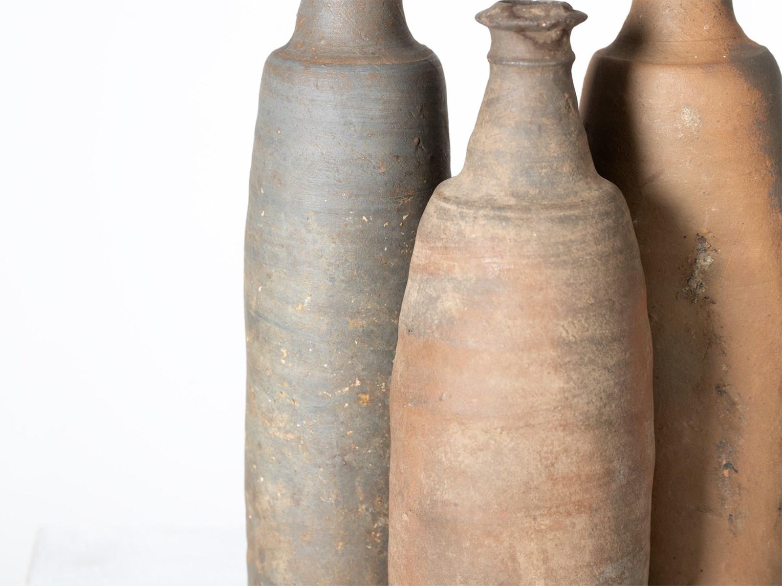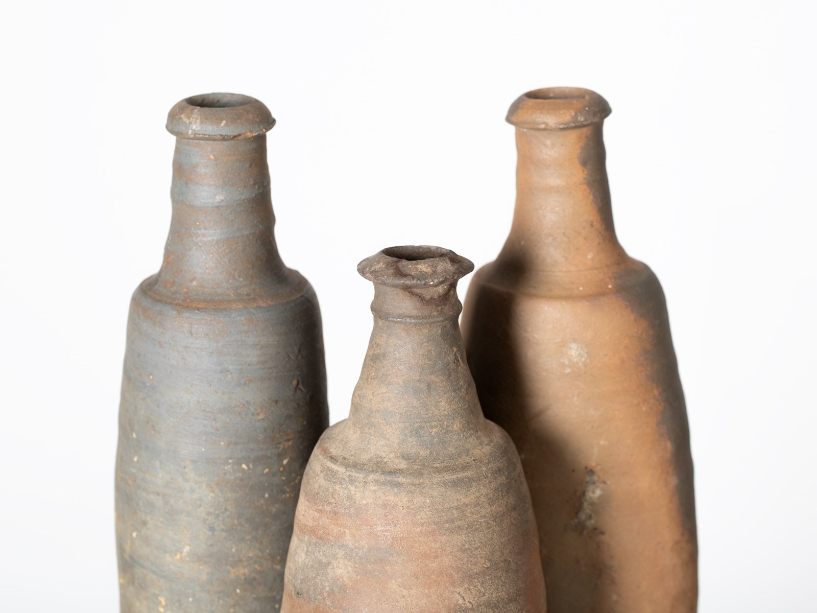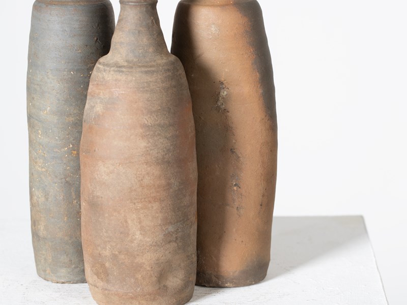 A trio of stoneware cider bottles. French, 19C.