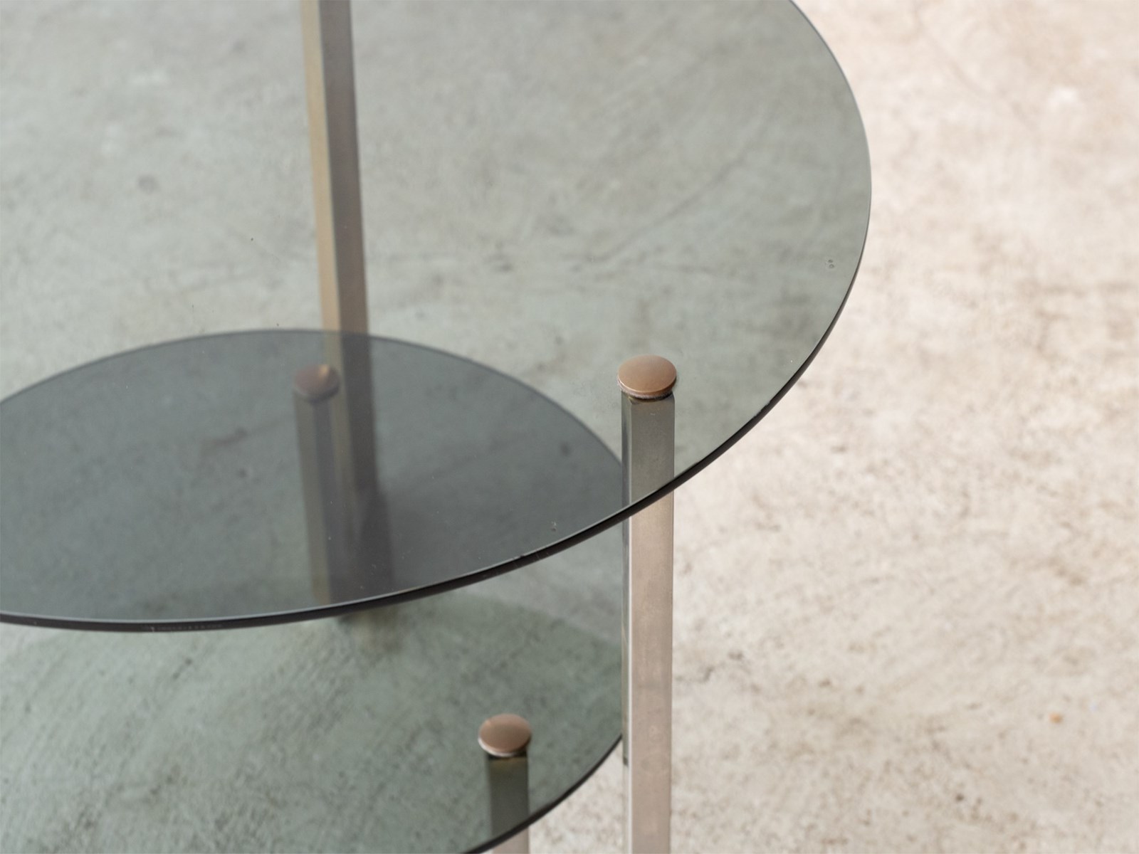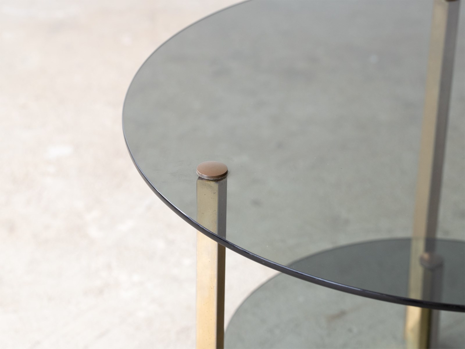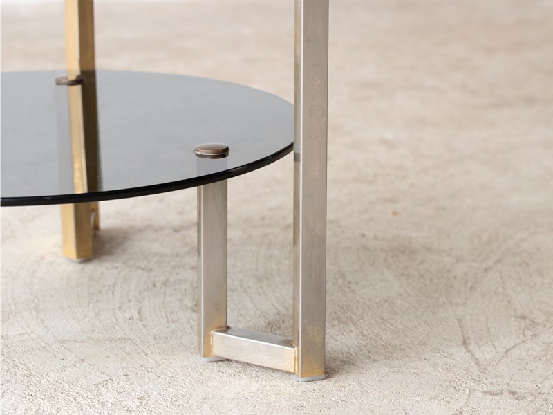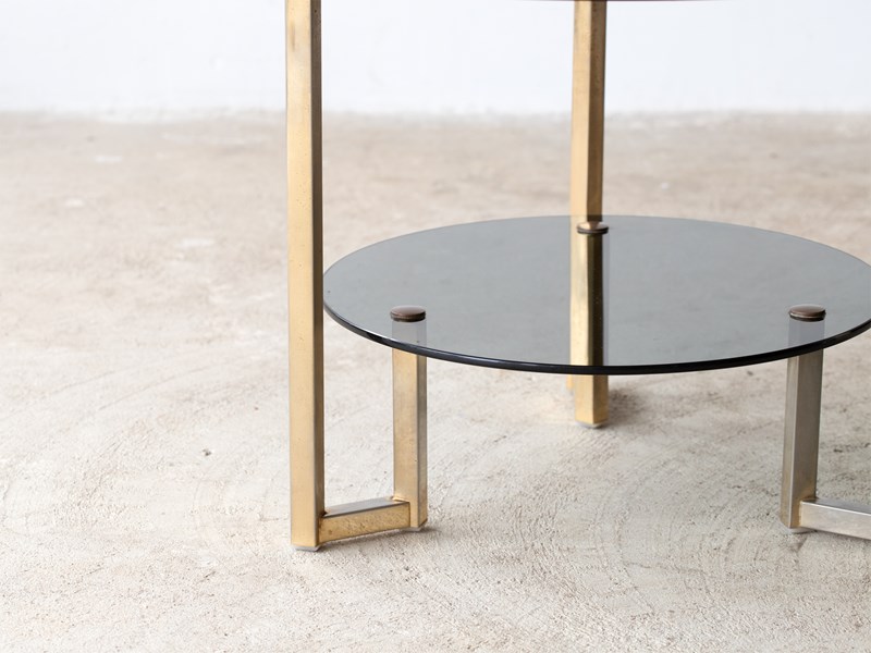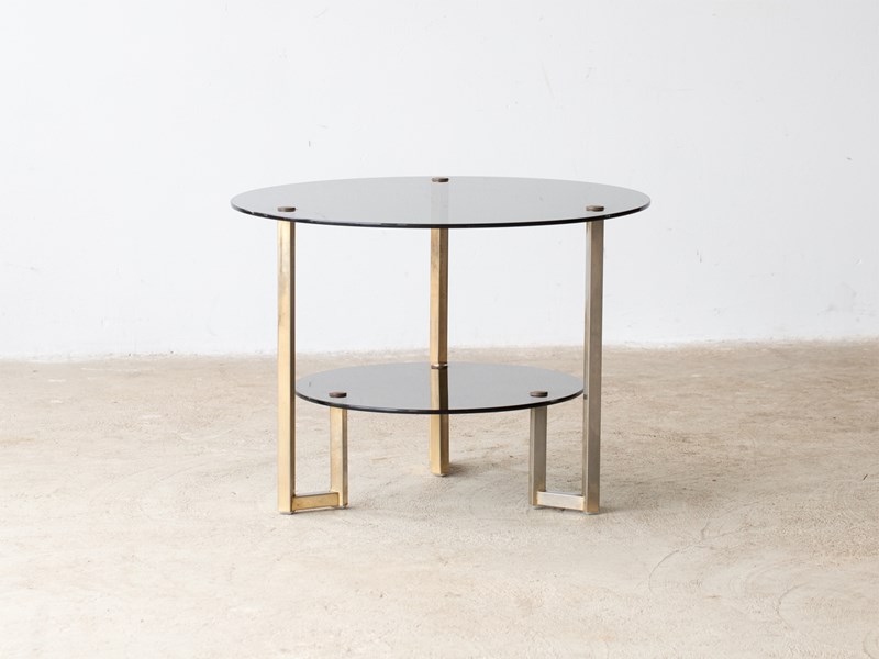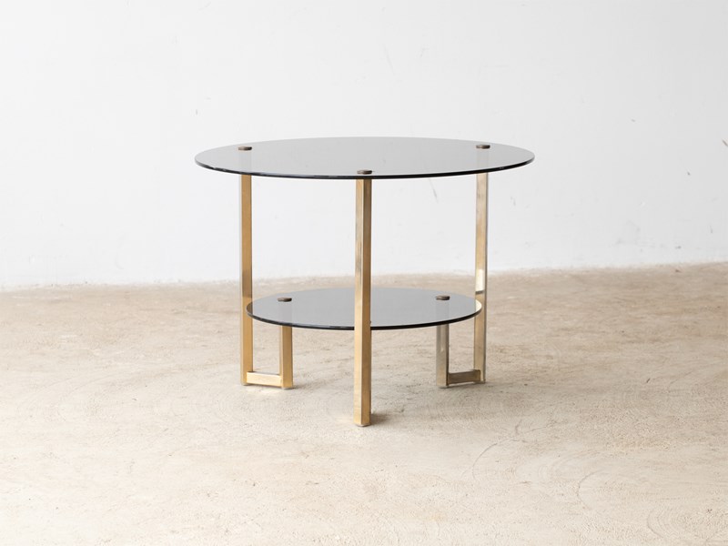 A smoked glass and gilt metal side table. French, c. 1970s.